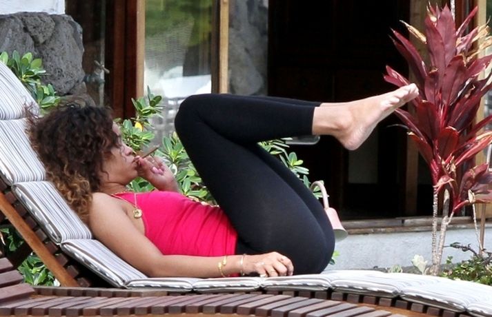 Söngkonan Rihanna, 23 ára, pósar léttklædd í ögrandi stellingum í nýrri undirfataherferð Emporio Armani eins og sjá má í myndasafni. Þá má sjá söngkonuna sem er stödd á Hawaii reykjandi á sama tíma og hún tók nokkrar jógaæfingar.Það er miklu erfiðara að vera viðkvæm heldur en töffari, lét Rihanna hafa eftir sér.