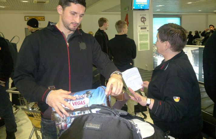Strákarnir eru lentir í Serbíu Óskar Ófeigur Jónsson skrifar 14. janúar 2012 18:05 Ásgeir Örn Hallgrímsson og Þórir Ólafsson bíða hér eftir töskunum sínum á flugvellinum. Mynd/Vilhelm Íslenska handboltalandsliðið er lent í Serbíu eftir flug frá London en íslenska liðið lagði af stað frá Keflavík í morgun. Strákarnir okkar munu spila sinn fyrsta leik á EM á móti Króatíu á mánudaginn. Ferðalagið var ekkert sérstakt en allir eru hressir samkvæmt fréttamanni Vísis, Henry Birgi Gunnarssyni, sem er líka á leiðinni á mótið. Ferðlagið er þó ekki alveg búið því framundan er tveggja tíma rútuferð frá Belgrad til Vrsac þar sem riðill íslenska liðsins fer fram. Vilhelm Gunnarsson, ljósmyndari Vísis og Fréttablaðsins, smellti af nokkrum myndum af strákunum og má sjá þær hér með fréttinni. Mest lesið Féll úr skíðalyftu og lést Fótbolti Goðsögn fallin frá Enski boltinn Býst ekki við að spila aftur fyrir landsliðið Íslenski boltinn Hótað brottrekstri ef hann færi ekki á börurnar Fótbolti Haaland stóðst vigtun eftir jólin Enski boltinn Zidane sá soninn spila á Afríkumótinu Fótbolti Var frústreraður vegna landsliðsins Fótbolti Kynntu Sigurð á slaginu sex á aðfangadag Íslenski boltinn Kærður af knattspyrnusambandinu Enski boltinn Dreymir enn um Evrópu: „Ekki tilbúin að borga það sama“ Sport Fleiri fréttir Ekkert spilað í vetur en gæti mætt Íslandi í fyrsta leik á EM Arnar Daði rekinn frá Stjörnunni en áfram þjálfari kvennaliðsins Öll höllin æpti nafn Gísla í spennutrylli Sakaður um niðurlægingu: „Við viljum ekki hafa hann sem þjálfara“ Haukur getur náð hundrað plús hundrað fyrir EM-fríið Rúnar sótti sinn fyrsta sigur sem þjálfari Wetzlar Haukur með sjö mörk og Magdeburg rétt marði botnliðið Rúmlega áttræður Moustafa endurkjörinn forseti IHF með yfirburðum Slæm fjárhagsstaða HSÍ kemur ekki niður á EM Donni fagnaði EM vali með skotsýningu Sigvaldi Björn fjarri góðu gamni í sjaldséðu tapi Kolstad Eva Björk með stórleik í fyrsta sigri Stjörnunnar „Hann er ein stærsta ástæðan fyrir því“ KA-menn fengu góða jólagjöf Flautumark hjá FH og ÍR með þeim í Höllina KA í undanúrslit á kostnað bikarmeistaranna Stærsti leikur ársins í Eyjum fer fram í kvöld „Er því miður kominn í jólafrí“ „Þetta var mjög skrítinn leikur“ Haukakonur í fjórða sætið KA/Þór - Valur 23-30 | Ótrúlegur viðsnúningur gestanna Ómar óstöðvandi og Magdeburg í undanúrslit Ómar Ingi fær meiri ábyrgð og tekur við kyndlinum af Aroni Ekkert stríð við Porto og einstakur Þorsteinn nítjándi maður Síðasta verkefni reyndist dýrt fyrir Sigvalda Teitur fer á EM sem hornamaður í stað Sigvalda Snorri kynnti EM-strákana okkar Hleyptu Þorsteini ekki heim og vilja ekki að hann fari á EM Kári og Logi vilja henda Ými út úr landsliðinu Sagður utan hóps fyrir Bjarka og Orra Sjá meira