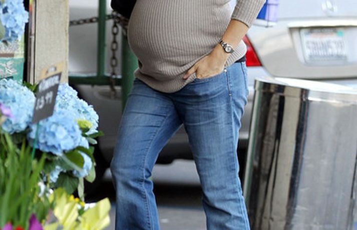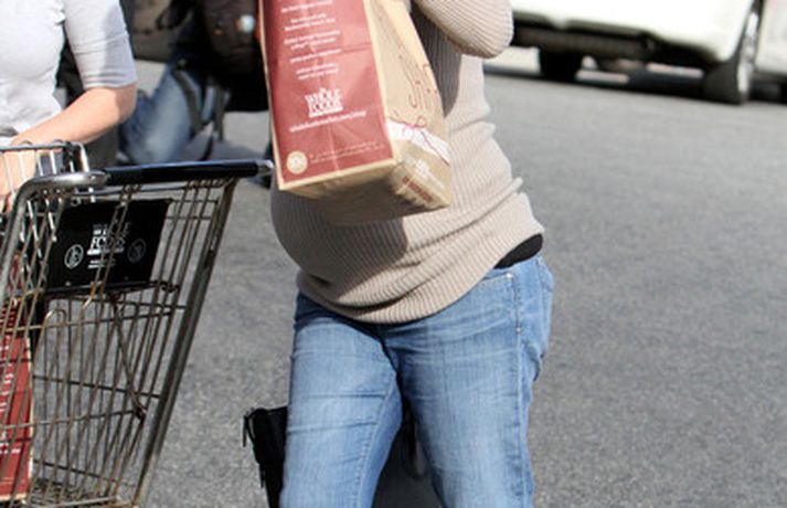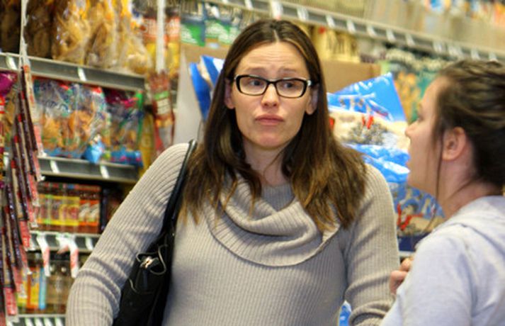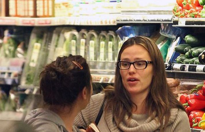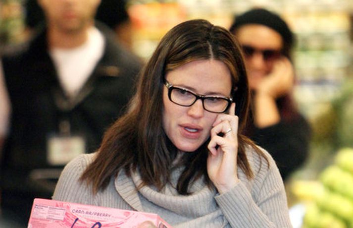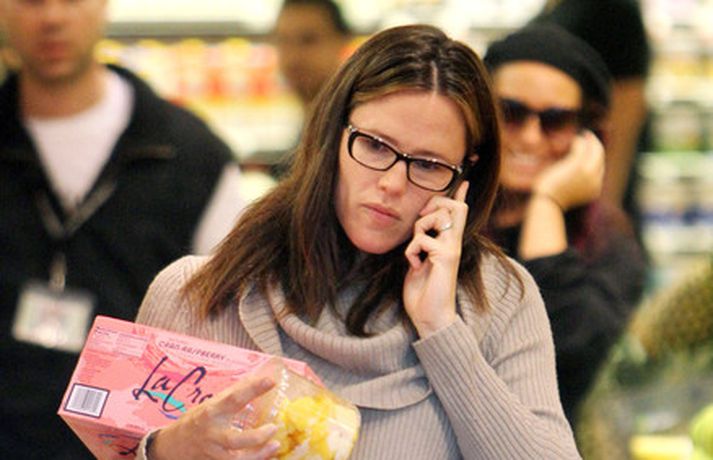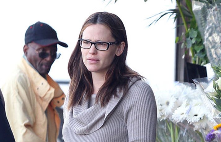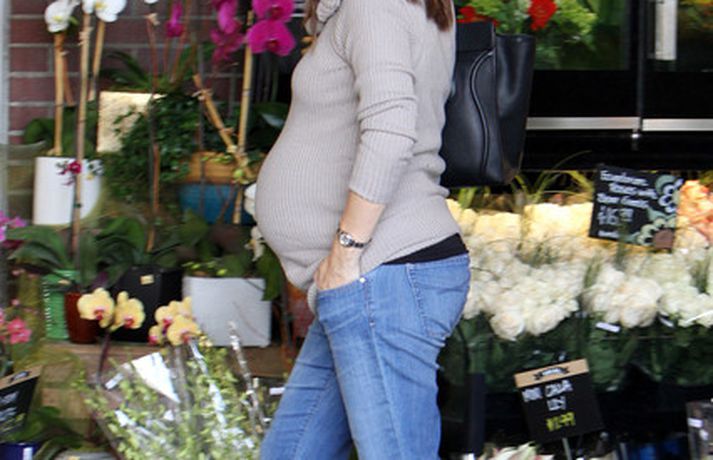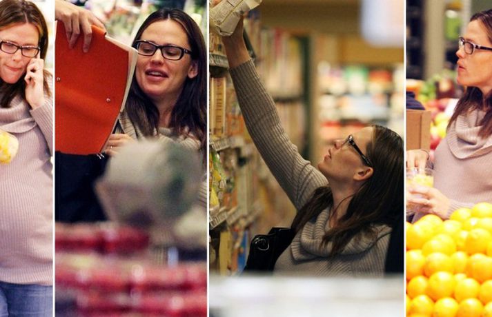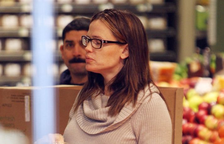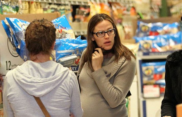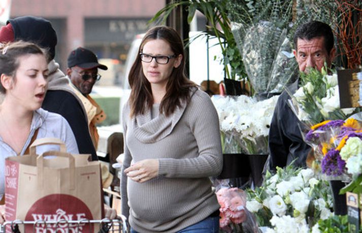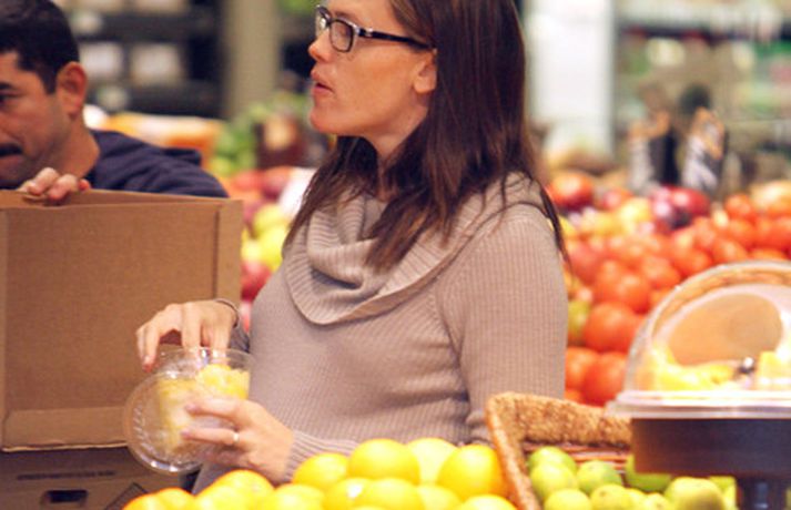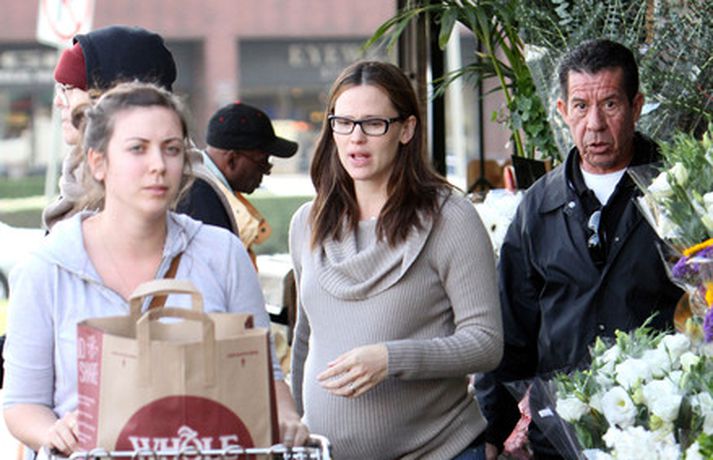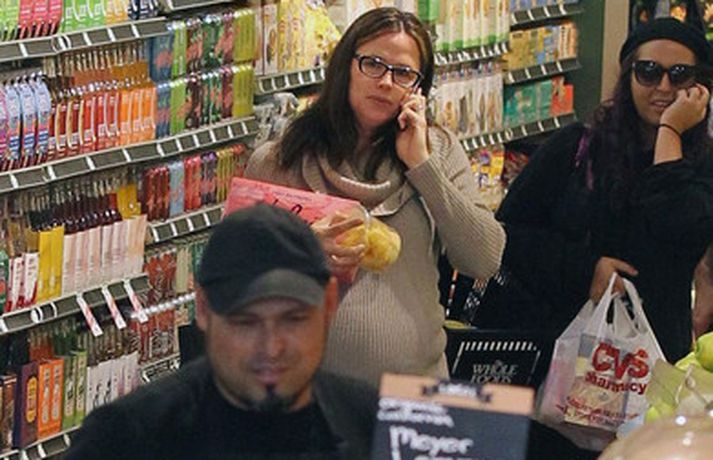 Leikkonan Jennifer Garner, 39 ára, verslaði í matvöruversluninni Whole Foods í gær í Brentwood í Kaliforníu. Eins og sjá má í myndasafni er Jennifer í fullu fjöri þrátt fyrir að vera gengin níu mánuði með þriðja barnið. Jennifer og eiginmaður hennar, leikarinn Ben Affleck, eiga saman tvær stúlkur fyrir.myndir/cover media