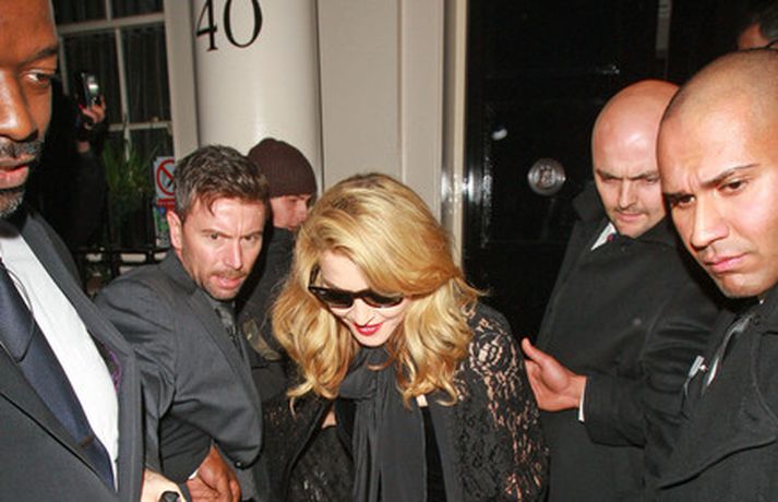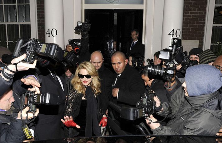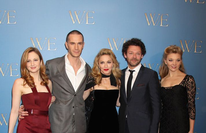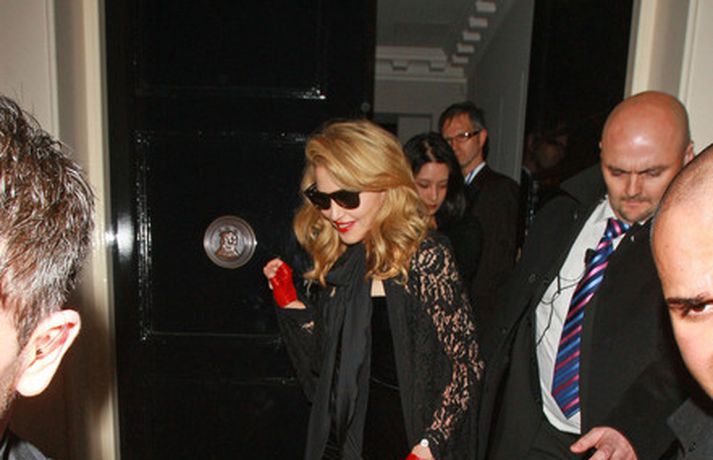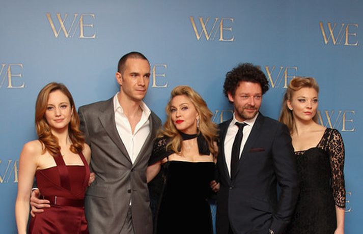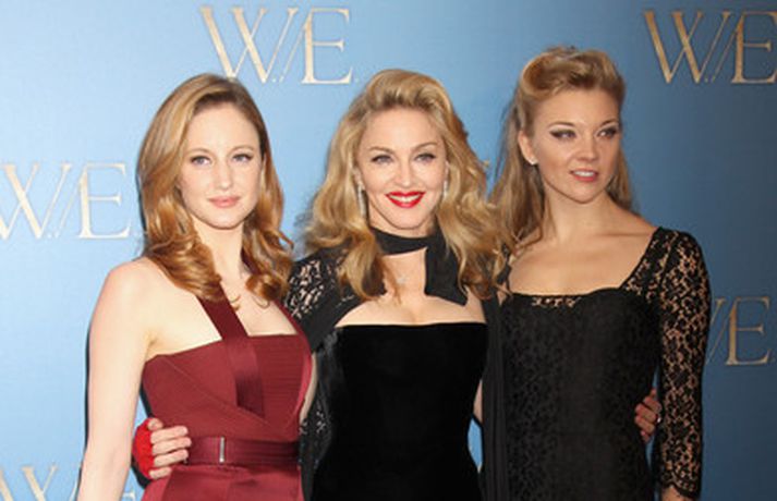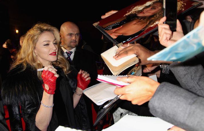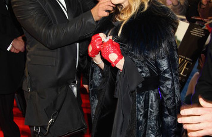 Ef einhver kemst upp með að vera með rauðar leðurgrifflur við síðkjól þá er það 53 ára Madonna sem var vægast sagt glæsileg á rauða dreglinum í London í gærkvöldi eins og sjá má í myndasafni. Madonna var klædd í Dolce&Gabbana keip yfir Dsquared síðkjól, Van Cleef & Arpels skartgripi og gekk um í Louis Vuitton skóm. Grifflurnar eru frá Chanel. Um var að ræða frumsýningu kvikmyndarinnar W.E. sem Madonna leikstýrir. Myndin er byggð á lífi hinnar fráskildu Wallis Simpson en ástarævintýri hennar með Eðvarði III Bretakonungi, leiddi til þess að hann sagði af sér krúnunni.