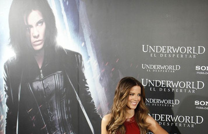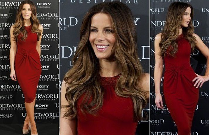 Leikkonan Kate Beckinsale stillti sér upp í sjóðheitum Michael Kors kjól á frumsýningu kvikmyndarinnar Underworld: Awakening.Ég reyni eins og ég get að taka inn vítamín og ég drekk ekki áfengi. Ég reyki hinsvegar, sagði hún. Eins og sjá má á myndunum var Kate ekki með neina skartgripi heldur leyfði flíkinni að njóta sín og fallegu hárinu.