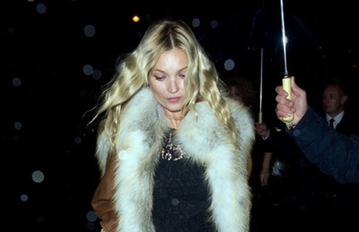 Breska fyrirsætan Kate Moss mætti í fögnuð á vegum Prada á tískuvikunni í París í gær klædd í pels eins og sjá má á myndunum. Þegar líða tók á kvöldið fékk fyrirsætan aðstoð með gang sökum ölvunar.Fólk virðist halda að velgengi sé fólgin í því að vera sætur. Það er alls ekki þannig. Þú þarft að vera skrefi á undan öðrum og vinna 24 tíma sólahrings ef þú ætlar að meika það, sagði Kate.