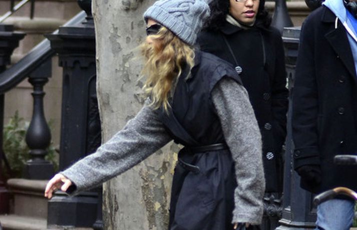 Leikkonan Sarah Jessica Parker, 46 ára, yfirgaf íbúð sína í New York í gær með húfu á höfði og sólgleraugu á nefinu eins og sjá má á myndunum. Þá má sjá eldri myndir af leikkonunni með eiginmanni sínum, Matthew Broderick, á rauða dreglinum í Pauline Trigere kjól sem klæddi hana mjög vel. Við eigum góða daga, sæmilega daga og líka mjög slæma! Þannig er hjónabandið, lét Sarah hafa eftir sér.