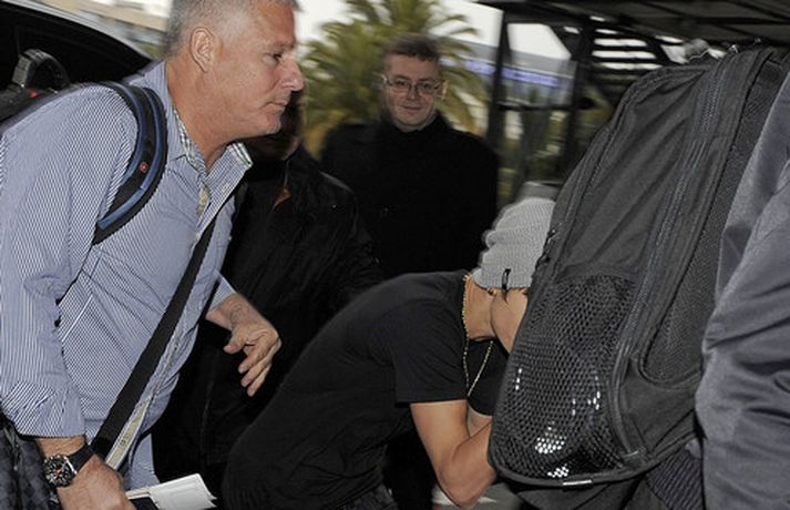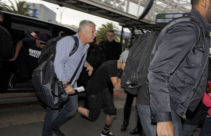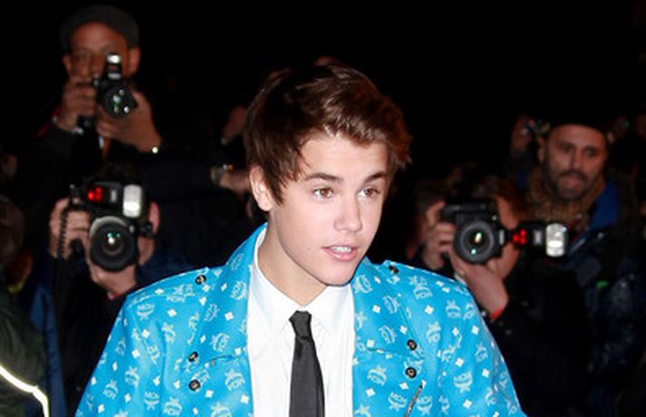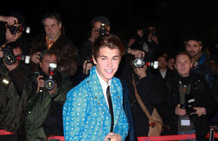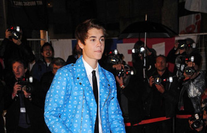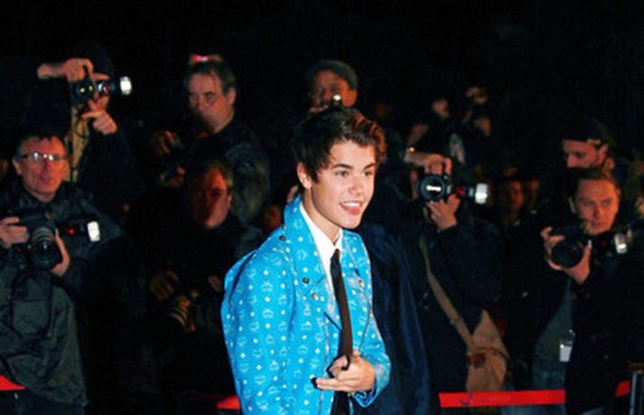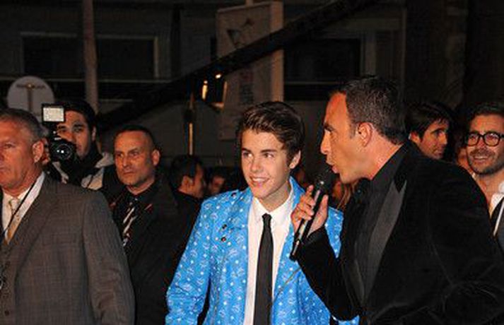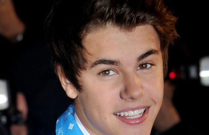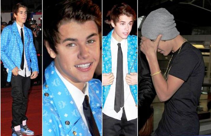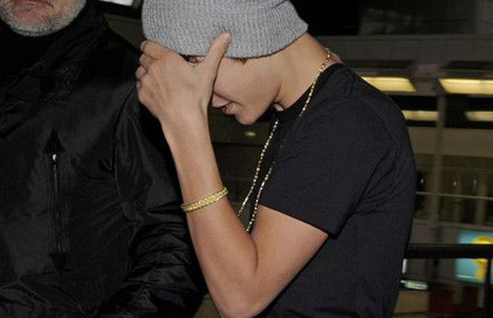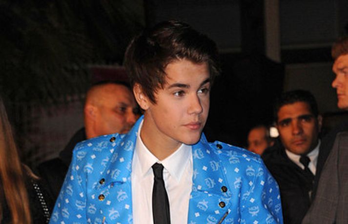 Söngvarinn Justin Bieber, 17 ára, stillti sér upp á rauða dreglinum á tónlistarhátíð í Cannes í Frakklandi á laugardaginn. Háralitur söngvarans vakti athygli en eins og sjá má á myndunum er hann með dekkri háralit en vanalega sem fer honum þetta líka svona vel. Þá má einnig sjá Justin hylja andlit sitt þegar hann var eltur af ljósmyndurum í gær, sunnudag.