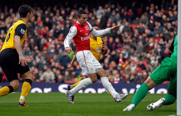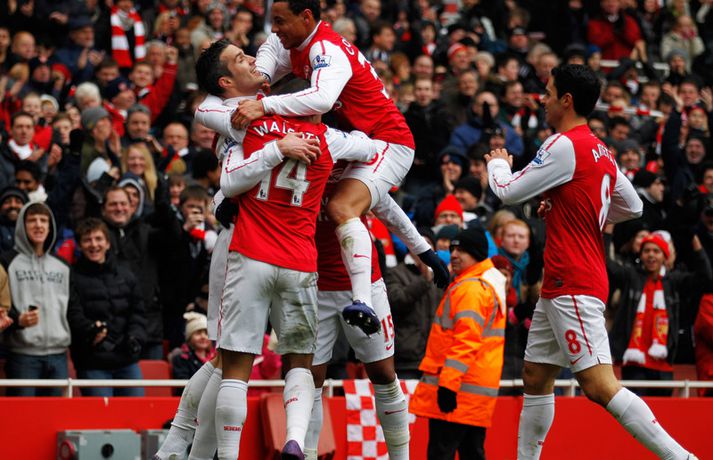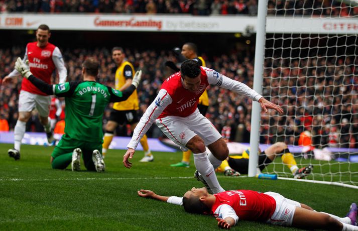 Van Persie með þrennu í fyrsta sigri Arsenal á árinu | Henry skoraði Óskar Ófeigur Jónsson skrifar 4. febrúar 2012 12:30 Mynd/Nordic Photos/Getty Robin van Persie skoraði þrennu og Alex Oxlade-Chamberlain var með tvö mörk þegar Arsenal-liðið hrökk í gang og vann 7-1 stórsigur á Blackburn Rovers. Þetta var fyrsti sigur Arsenal á árinu 2004 en liðið var aðeins búið að ná í eitt stig úr síðustu fjórum leikjum sínum. Thierry Henry kom inn á sem varamaður í seinni hálfleik og skoraði sjöunda og síðasta markið. Theo Walcott átti mjög góðan dag eins og þeir Van Persie og Oxlade-Chamberlain en Walcott lagði upp þrjú mörk í leiknum. Arsenal-liðið sundurspilaði Blackburn-liðið í þessum leik og sigurinn hefði vel getað orðið enn stærri. Robin van Persie lagði upp tvö mörk auk þess að skora þrjú mörk sjálfur. Robin van Persie var búinn að koma Arsenal í 1-0 eftir aðeins 80 sekúndur eftir frábæran undirbúning frá Theo Walcott. Morten Gamst Pedersen jafnaði hálftíma síðar með glæsilegu marki beint út aukaspyrnu en Arsenal-liðið svaraði með tveimur mörkum með tveggja mínútna millibili. Robin van Persie skoraði það fyrra á 38. mínútu eftir aðra frábæra stoðsendingu frá Walcott og Van Persie lagði síðan upp þriðja markið fyrir Alex Oxlade-Chamberlain á 40. mínútu. Gaël Givet fékk síðan rauða spjaldið fyrir tveggja fóta tæklingu á Robin van Persie á 43. mínútu. Möguleikar Blackburn voru þá endanlega úr sögunni. Mikel Arteta skoraði fjórða markið á 51. mínútu í kjölfarið á hornspyrnu Van Persie en Laurent Koscielny lagði til hans boltans. Arteta mætti Blackburn þrisvar í deildinni í vetur (einu sinni með Everton) og skoraði í öllum leikjunum. Alex Oxlade-Chamberlain var ekki hættur því hann skoraði fimmta markið á 54. mínútu eftir frábæran undirbúning Theo Walcott. Robin van Persie innsiglaði þrennu sína á 61. mínútu eftir flotta sendingu Francis Coquelin og góða skiptingu hjá Oxlade-Chamberlain. Arsenal átti eftir að bæta einu marki við því Thierry Henry kom inn á sem varamaður og skoraði sjöundan markið í uppbótartíma eftir sendingu frá Robin van Persie.Staðan í ensku úrvalsdeildinni. Mest lesið Dómarinn hlýtur mikið lof fyrir stundarbræði í garð Jake Paul og Joshua Sport Pílukastarinn biðst afsökunar á að hafa fallið á lyfjaprófinu og öllum lygunum Sport Tvenna frá Rogers tryggði Villa sigur gegn Manchester United Enski boltinn Albert skoraði í fyrsta sigri Fiorentina Fótbolti Haaland gaf barnabarni Hareide gjöf Enski boltinn Arnór Ingvi orðinn leikmaður KR Íslenski boltinn Sakaður um svindl á HM í pílukasti Sport Tvær títanplötur settar í Jake Paul eftir kjálkabrotið Sport Ronaldo á nærbuxunum lætur Elon Musk efast um sjálfan sig Fótbolti „Ef dómarinn hefði sinnt sínu starfi almennilega hefði Romero ekki fengið spjald“ Enski boltinn Fleiri fréttir Tvenna frá Rogers tryggði Villa sigur gegn Manchester United Fimmta sinn sem Arsenal er á toppnum um jólin: Unnu ekki titilinn í fyrstu fjögur skiptin „Viljum við að okkar verði minnst fyrir að vera skræfur?“ „Ef dómarinn hefði sinnt sínu starfi almennilega hefði Romero ekki fengið spjald“ Haaland gaf barnabarni Hareide gjöf Sjáðu mörkin úr enska: Sviptingar, sænskt þema og svakalegar tæklingar Calvert-Lewin hættir ekki að skora Gyökeres skaut Arsenal aftur á toppinn Slot fámáll um stöðuna á Isak Gleði og sorg í sigri Liverpool Dramatík er Broja reyndist hetja Burnley Haaland frábær er Manchester City komst á toppinn Andri Lucas skoraði í langþráðum sigri Blackburn Chelsea vann upp tveggja marka forskot á St James' Park Ekkert fararsnið á Guardiola sem segir að City verði að vera undirbúið Tíu bestu mörkin úr leikjum Liverpool og Tottenham Salah bað samherjana afsökunar Lineker fokillur við blaðamann: „Þvílíkt kjaftæði“ Skírði soninn LFC og Mac Allister lét draum feðganna rætast Jóga og pílates lykillinn að snöggri endurkomu Fantasýn: „Hann setti allt á 3 og það kom upp 19“ Alexander Isak fékk sænska gullboltann „Salah líkaði ekki að vera í skugganum af Isak og Wirtz“ Amorim vill Neves Benti á hinn íslenska Dan Burn Lést á leiðinni heim úr fótboltaleik Forsætisráðherrann hótar Roman Abramovich og segir að „klukkan tifi“ „Sýnum kvennaíþróttir af því að þær eru frábærar“ Snéri aftur í fótbolta eftir 35 ára hlé: „Kalla mig Jackie Grealish“ Óttast að besti leikmaður Liverpool verði frá Sjá meira