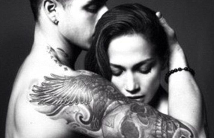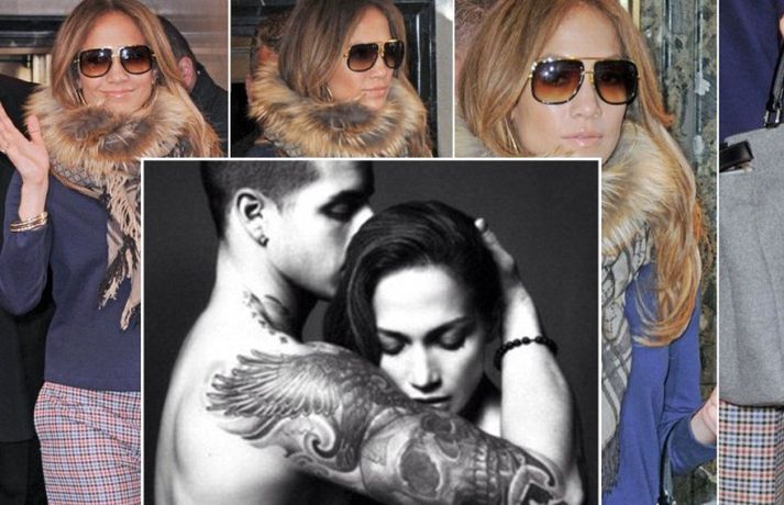 Í meðfylgjandi myndasafni má meðal annars sjá ljósmynd sem söng- og leikkonan Jennifer Lopez setti á Twitter síðuna sína Valentínusardaginn. Myndin, sem er svart/hvít, sýnir Jennifer og kærastan hennar, dansarann Casper Smart fáklædd í faðmlögum þar sem hann kyssir höfuð söngkonunnar og hún hvílir á húðflúraðri hendi hans með lokuð augun. Myndin var fjarlægð af síðunni hennar daginn eftir.