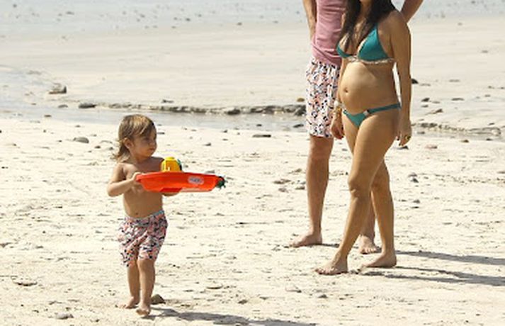Hin 32 ára gamla raunveruleikastjarna Kourtney Kardashian gekk stolt um strendur Mexíkó á dögunum en hún tilkynnti í nóvember síðastliðnum að von væri á fjölgun í fjölskyldunni. Hún var ófeimin við að sýna óléttan líkama sinn og virtist líða vel í eigin skinni. Kourtney var í kærkomnu fríi með kærtastanum, Skott Disick og syni sínum, Mason en hún hefur talað um það lengi að hún þrái að hann eignist systkini til að leika við. Eins og fram hefur komið í raunveruleikaþáttunum um Kardashian klanið hefur gengið á ýmsu í sambandi þeirra Kourtney og Skott en ekki var annað að sjá ströndinni en að parið væri yfir sig ástfangið.