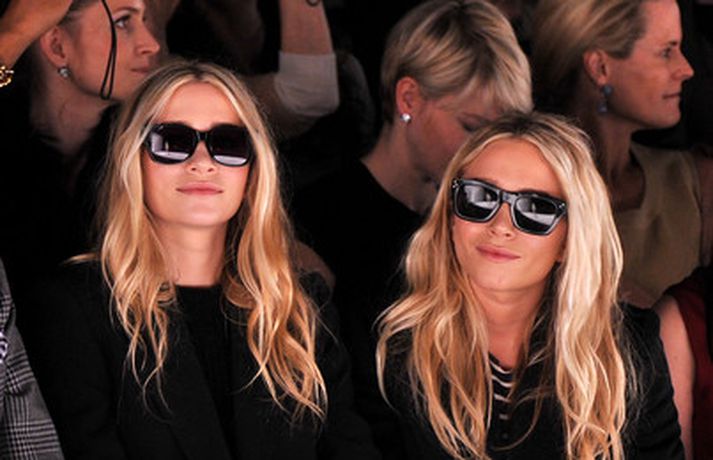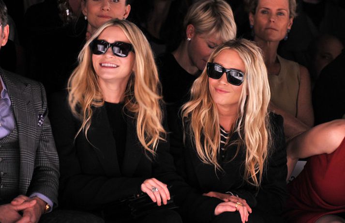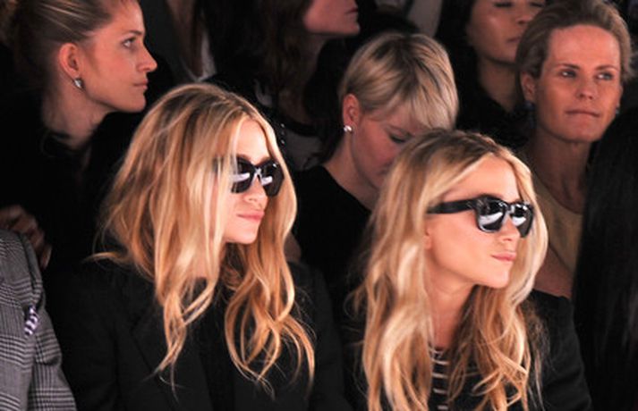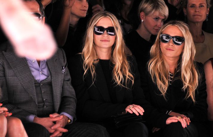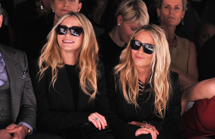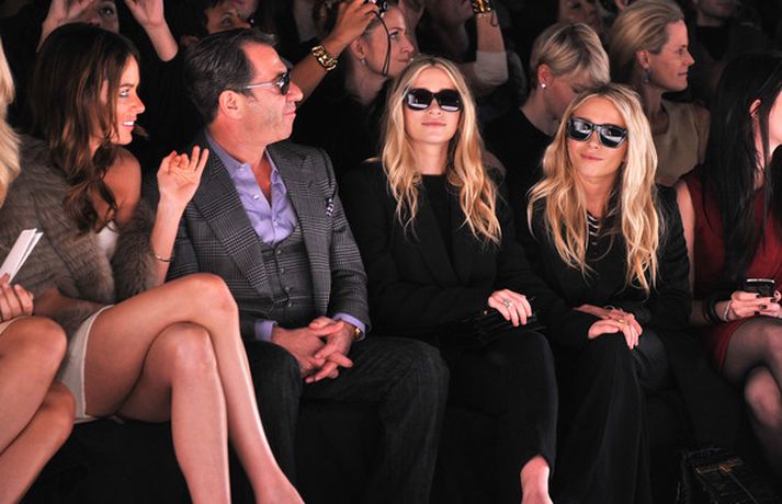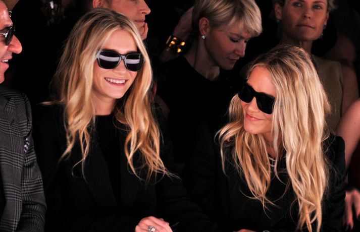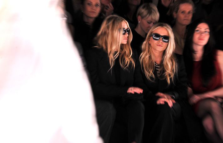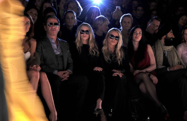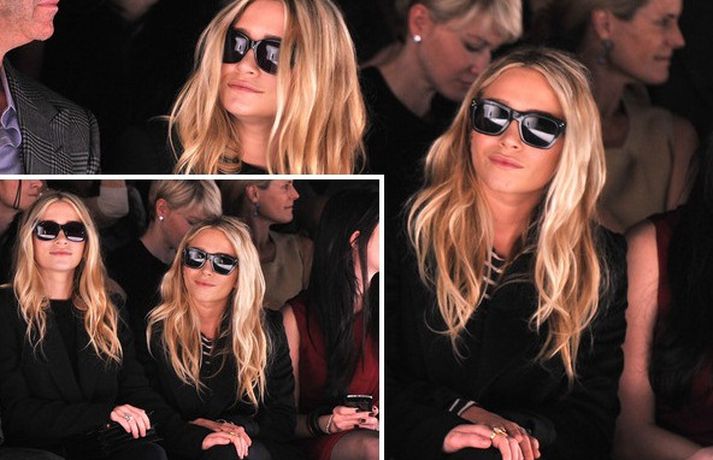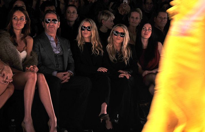 Ashley Olsen og tvíburasystir hennar, Mary-Kate, 25 ára, sátu á fremstu röð á tískusýningu J. Mendel fyrir haustið 2012 sem fram fór á tískuvikunni í New York í gær. Systurnar vöktu mikla athygli, báðar með sólgleraugu á nefinu eins og sjá má á myndunum. Fyrr í vikunni héldu tvíburarnir eigin tískusýningu á nýrri fatalínu sem þær nefna The Row.myndir/cover media