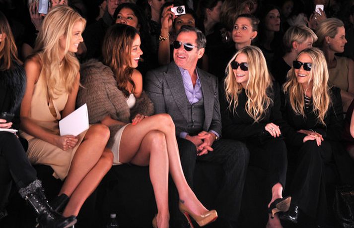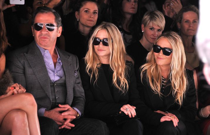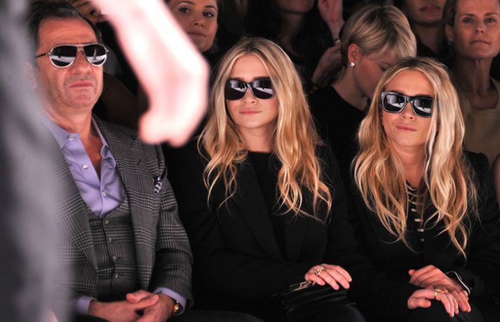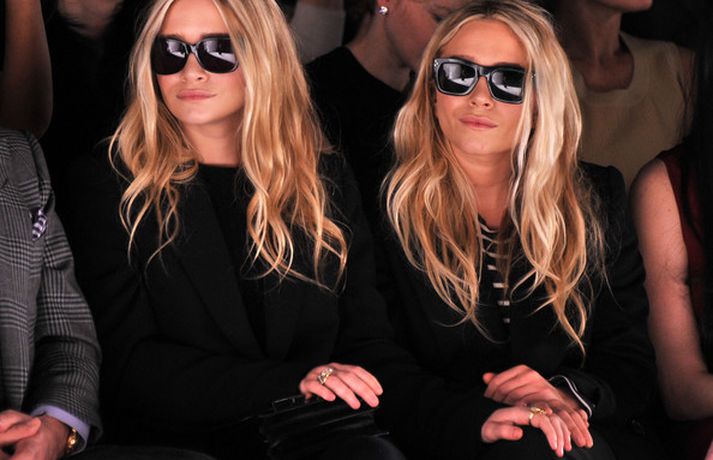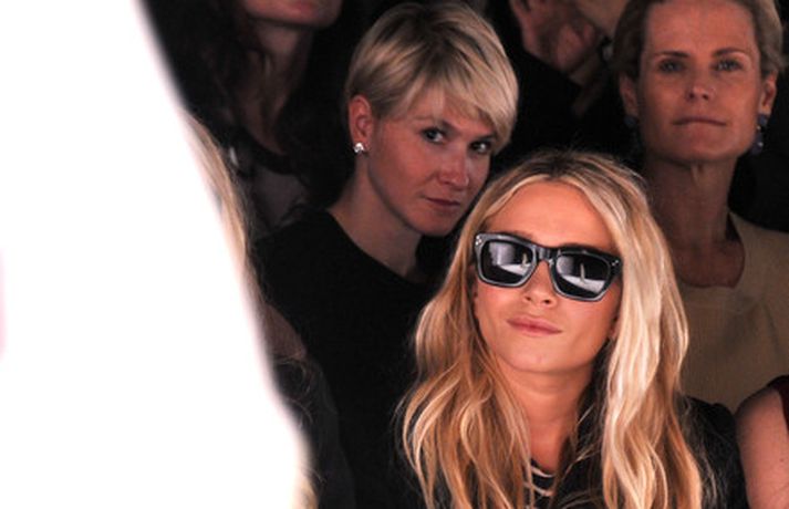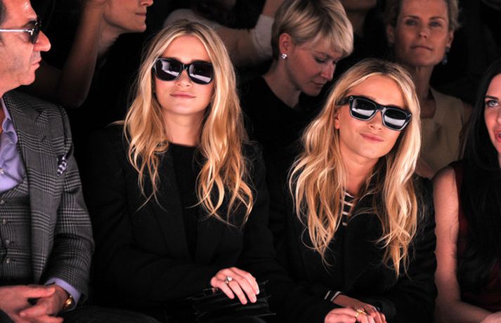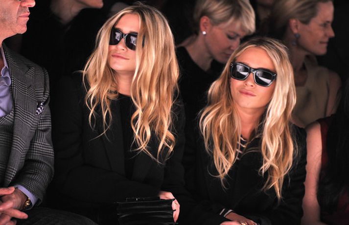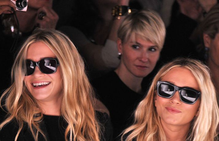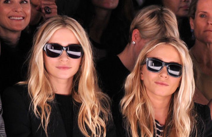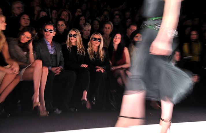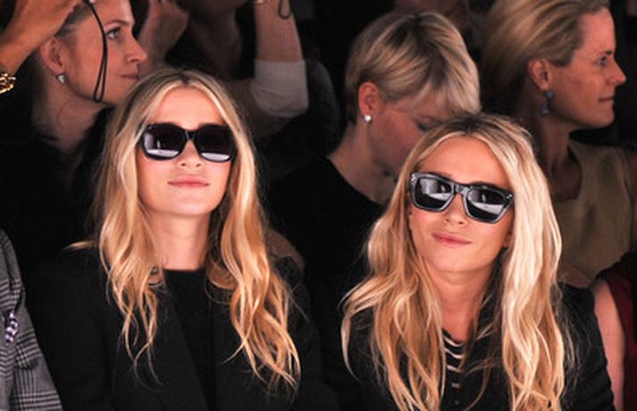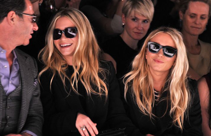 Ashley Olsen og tvíburasystir hennar, Mary-Kate, 25 ára, sátu á fremstu röð á tískusýningu J. Mendel fyrir haustið 2012 sem fram fór á tískuvikunni í New York í gær. Systurnar vöktu mikla athygli, báðar með sólgleraugu á nefinu eins og sjá má á myndunum. Fyrr í vikunni héldu tvíburarnir eigin tískusýningu á nýrri fatalínu sem þær nefna The Row.myndir/cover media