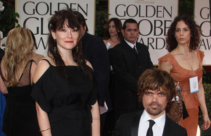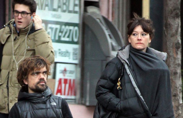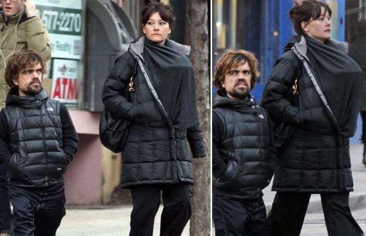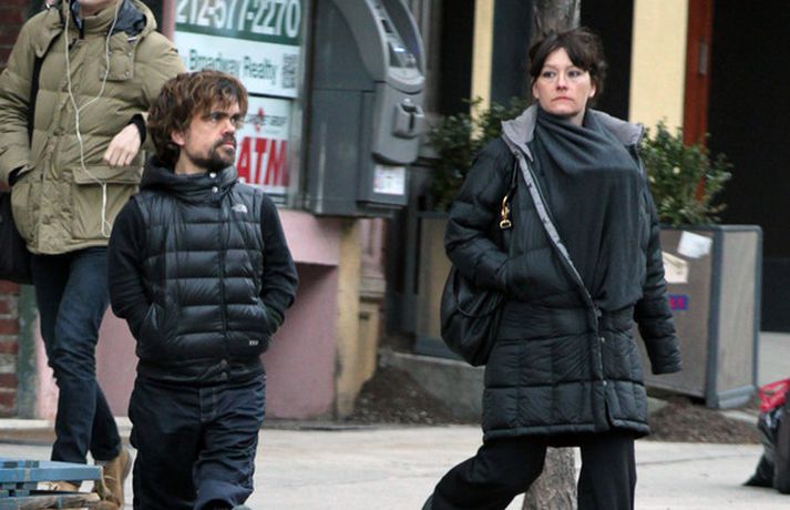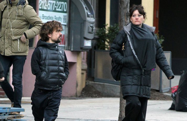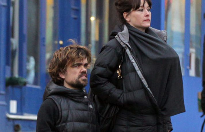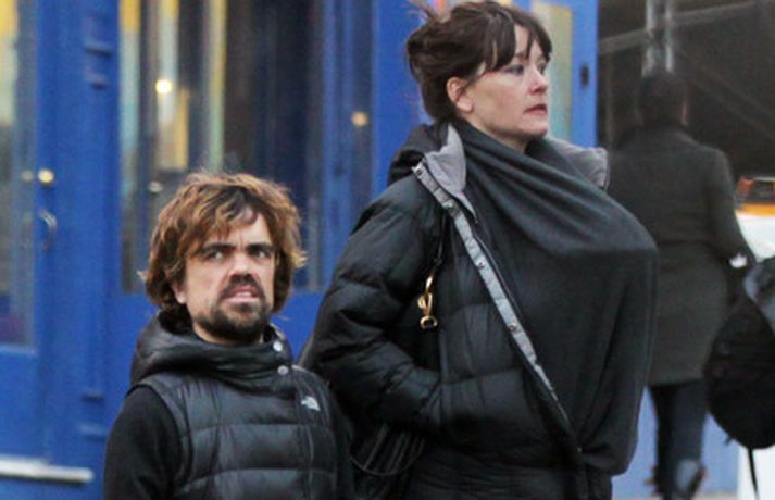 Leikarinn Peter Dinklage og eiginkona hans Erica Schmidt röltu í Soho hverfinu í New York í gær. Eins og sjá má er töluverður hæðarmunur á hjónunum sem sannar kenninguna að hæð eða þyngd eru algjört aukaatriði þegar ástin er annars vegar. Erica var með dóttur þeirra framan á sér bak við svarta slæðu eins og sjá má á myndunum. Þá má einnig sjá hjónin á rauða dreglinum í myndasafni.