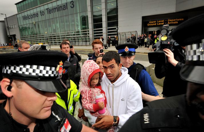Argentínumaðurinn Carlos Tevez er lentur í Manchester eftir þriggja mánaða útlegð í heimalandinu. Þangað fór hann í óþökk félags síns, Man. City. Tevez hefur ekki spilað fyrir City síðan í september á síðasta ári. Þegar hann neitaði að koma af bekknum í Meistaradeildarleik gegn Bayern Munchen sagði stjóri liðsins, Roberto Mancini, að hann myndi aldrei spila aftur fyrir félagið. City reyndi að selja leikmanninn í janúar en án árangurs. Það var því lítið annað fyrir Tevez að gera en að koma aftur til Englands. Mikið fjölmiðlafár var þegar Tevez lenti og þurfti hann lögreglufylgd út úr flugstöðinni. Tevez þarf að mæta á æfingasvæði City á eftir og verður örugglega látinn hlaupa eitthvað. Hægt er að sjá fleiri myndir af Tevez hér fyrir ofan.