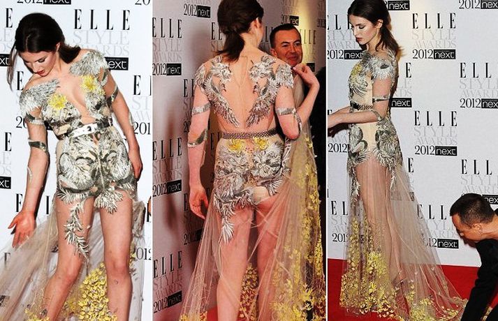 Ljósmyndarar tóku andköf þegar fyrirsætan Tali Lennox, 19 ára, stillti sér upp í einstaklega fallegum Julien Macdonald kjól á Elle style verðlaunahátiðinni. Ekki hafði verið hugað nægilega vel að bakhluta kjólsins. Eins og sjá má í myndasafni náði flíkin ekki að hylja undirfatnað fyrirsætunnar eins og til var ætlast. Því var hinsvegar kippt í liðinn.