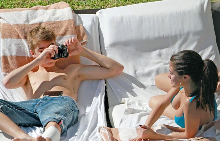 Það leikur enginn vafi á því að söngvarinn Justin Bieber og leik- og söngkonan Selena Gomez sem hafa verið kærustupar síðan í byrjun árs 2011 eru ástfangin. Ef myndirnar eru skoðaðar má greinilega sjá að Justin fær ekki nóg af því að horfa á unnustu sína.