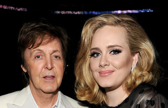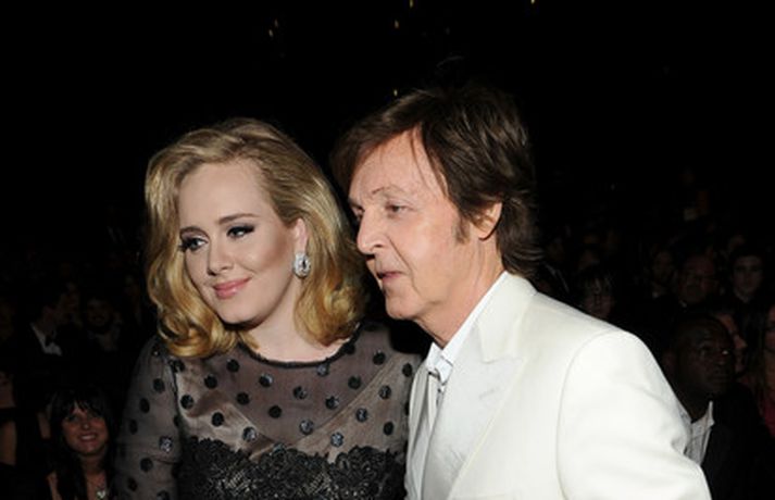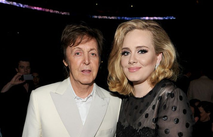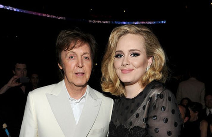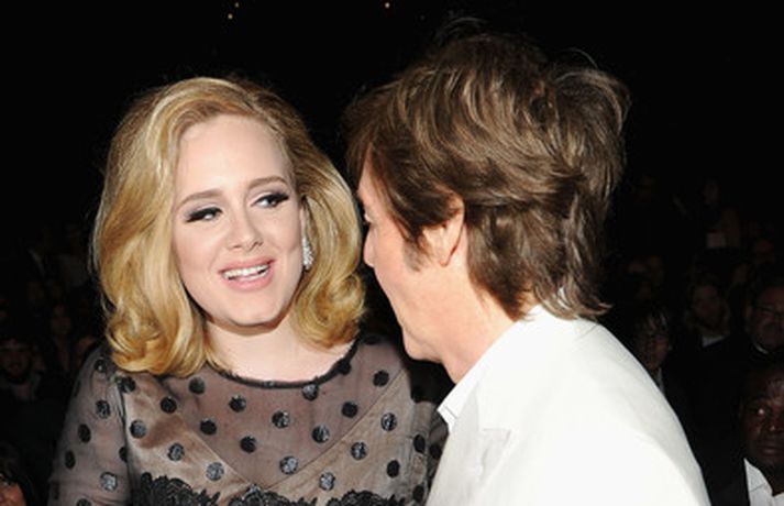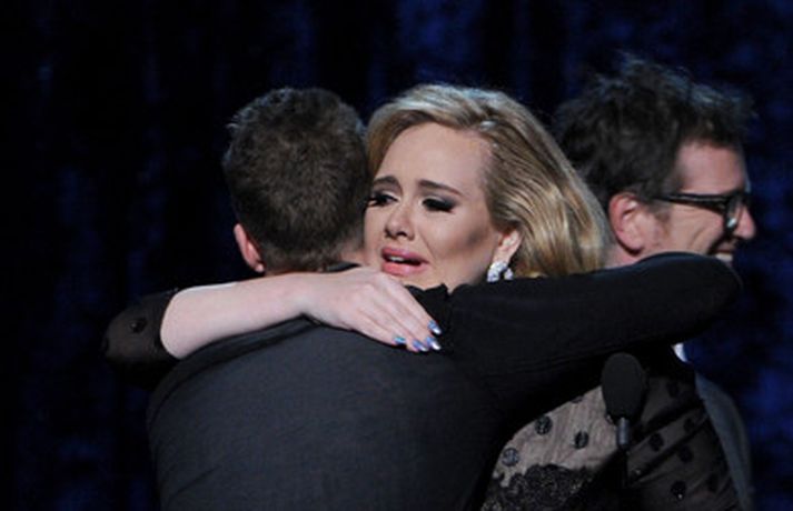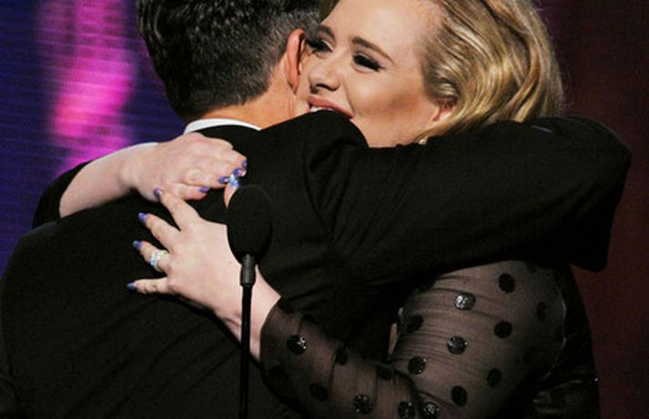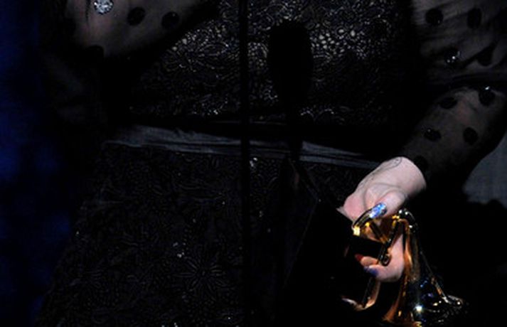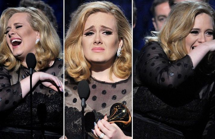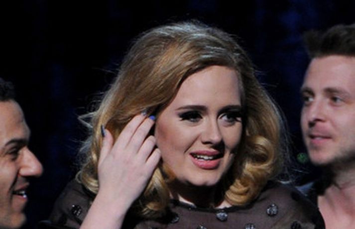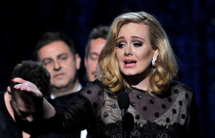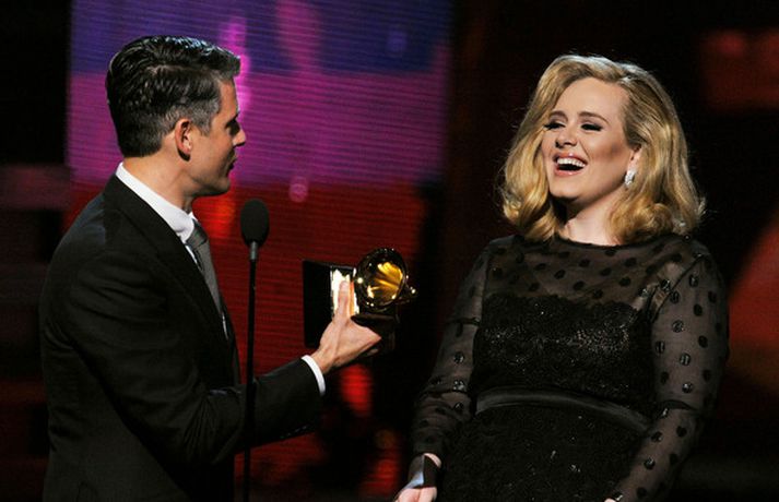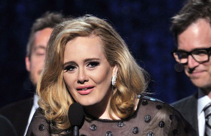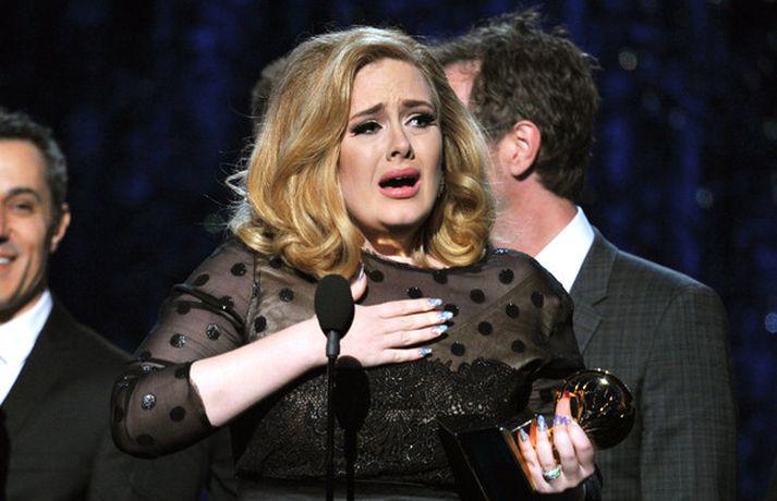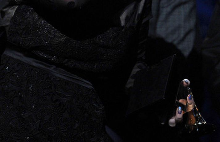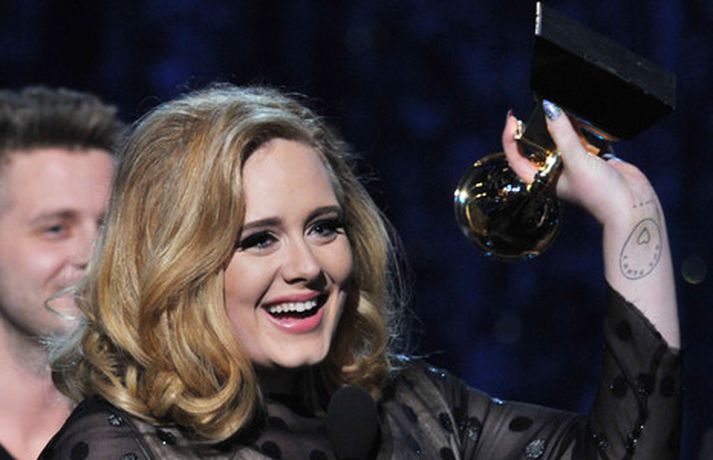 Það var breska söngkonan Adele sem kom sá og sigraði á Grammy verðlaunahátíðinni í gærkvöldi. Eins og sjá má á myndunum var hún glæsileg klædd í svartan kjól. Adele var útnefnd í sex flokkum og vann þá alla en hún fékk m.a. verðlaun fyrir bestu plötu ársins og besta lag ársins. Ég þarf að fá að þakka læknunum sem gáfu mér röddina á ný, sagði Adele sem veiktist í nóvember í fyrra og þurfti að aflýsa öllum tónleikum það sem eftir lifði árs.