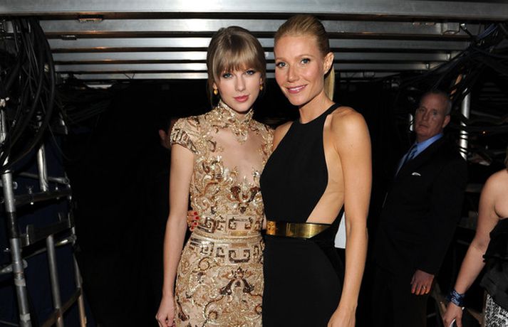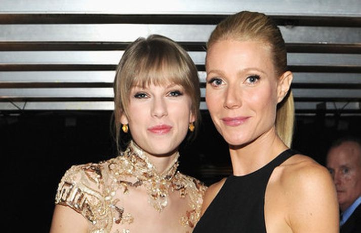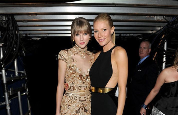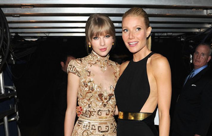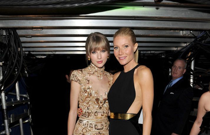 Leikkonan Gwyneth Paltrow, 39 ára, var stórglæsileg í svörtum Stellu McCartney kjól á Grammy verðlaunahátíðinni í gærkvöldi. Eins og sjá má var hún með hárið tekið aftur og náttúrulega förðuð. Þá má sjá Gwyneth stilla sér upp með söngkonunni Taylor Swift baksviðs.