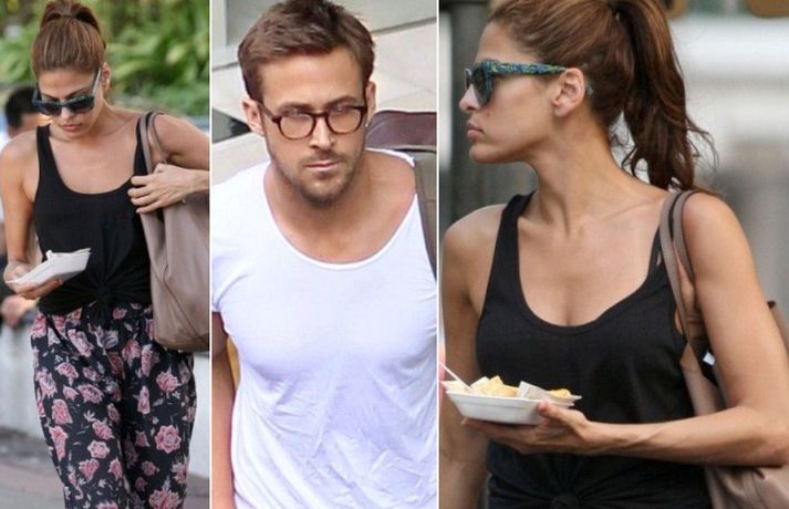 Eitt heitasta parið í Hollywood, Drive stjarnan Ryan Gosling, 31 árs, og unnusta hans, leikkonan Eva Mendes, er statt í Bangkok í Tælandi þar sem Ryan vinnur við tökur á nýrri kvikmynd sem ber heitið Only God Forgives. Á meðan Ryan er upptekinn við tökur rölti Eva um borgina og nartaði í ferska ávexti á göngunni.