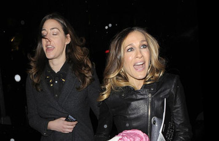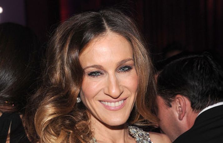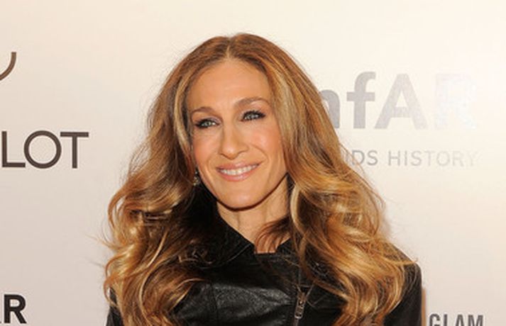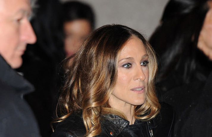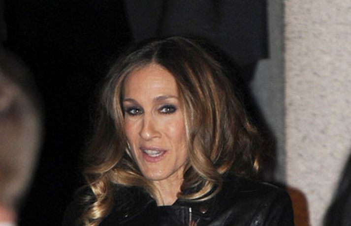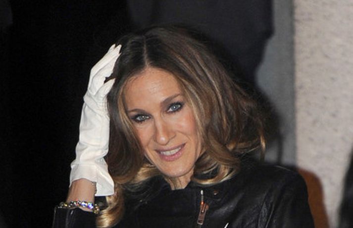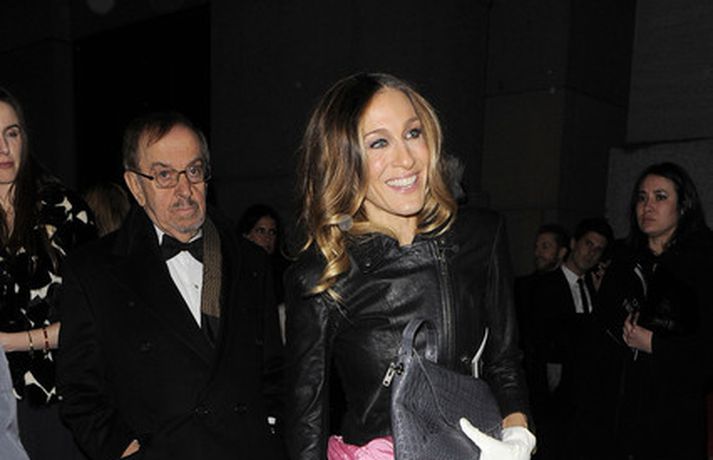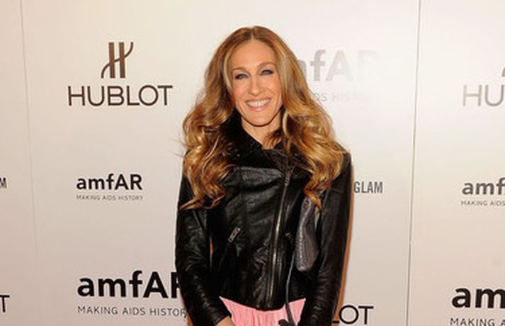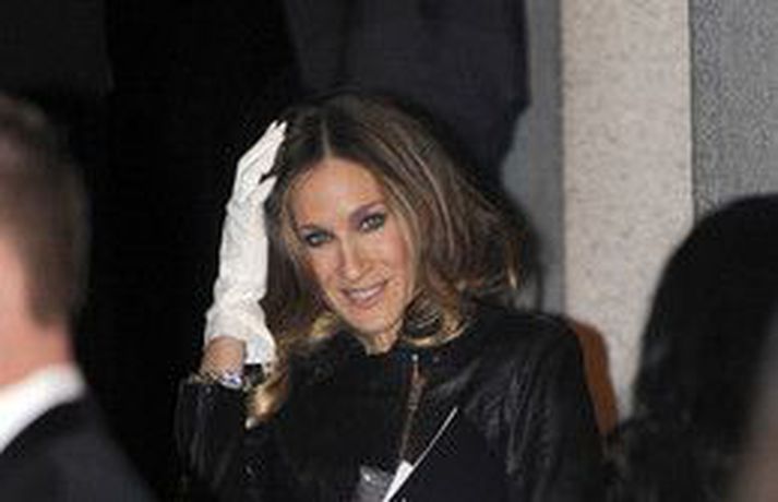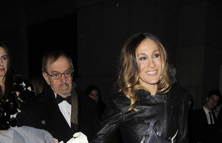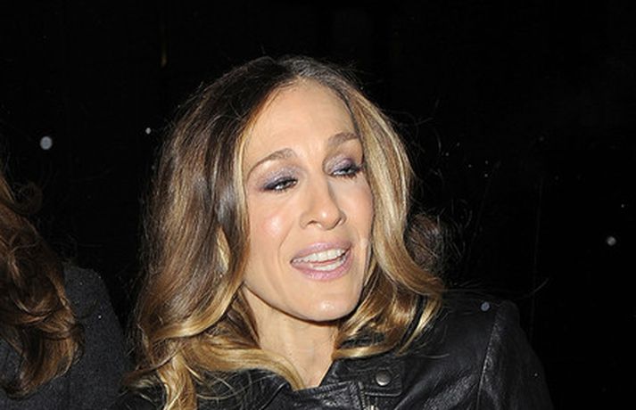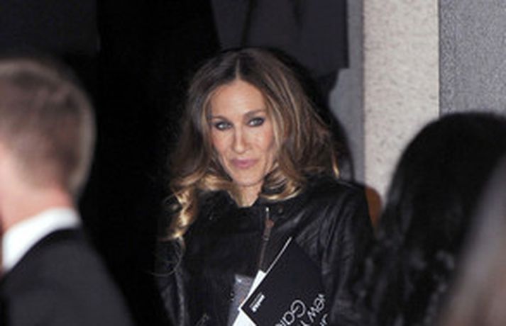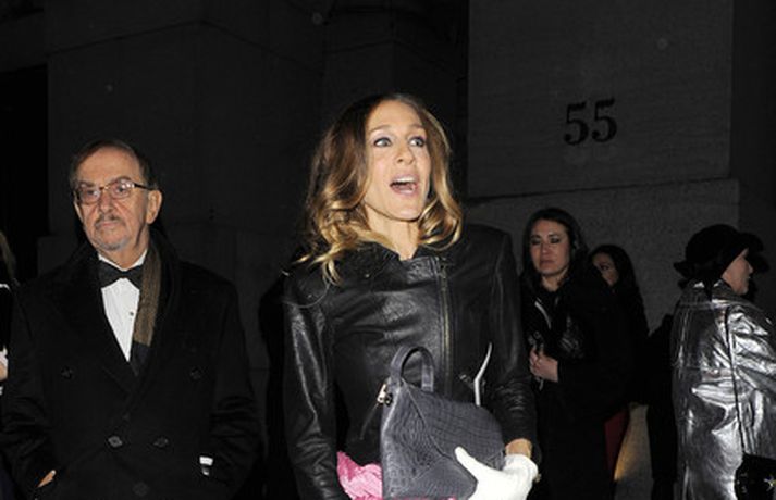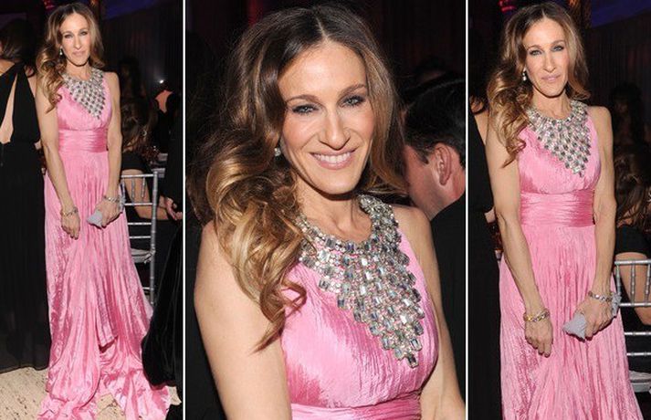 Leikkonan Sarah Jessica Parker, 46 ára, stillti sér upp á rauða dreglinum í bleikum Oscar de la Renta síðkjól sem fór henni mjög vel.Mistökin eru kannski örlög þín ef út í það er farið, lét Sarah hafa eftir sér. Takið eftir hvítu hönskunum, svarta Theyskens Theory leðurjakkanum og Carole Tanenbaum hálsmeninu sem toppaði heildarútlit leikkonunnar.