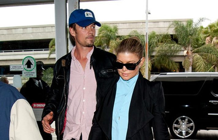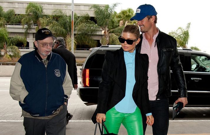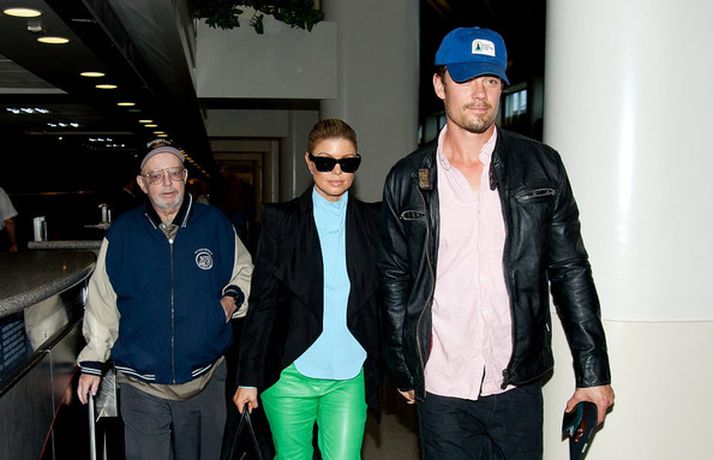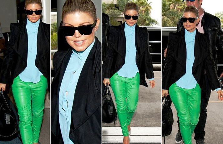 Söngkonan Fergie, 36 ára, og eiginmaður hennar, leikarinn Josh Duhamel voru mynduð á LAX flugvellinum. Buxur sögnkonunnar vöktu sérstaka athygli en eins og sést í meðfylgjandi myndasafni er Fergie í eiturgrænum buxum, ljósblárri skyrtu og bláum jakka.Lífið gengur ekki út á að taka stöðugt við. Við verðum að gefa eitthvað á móti, sagði hún.