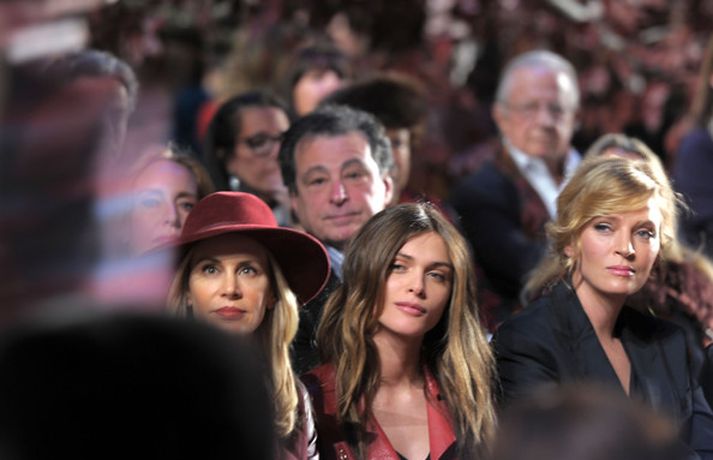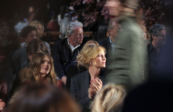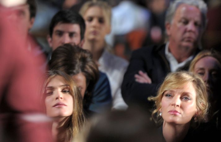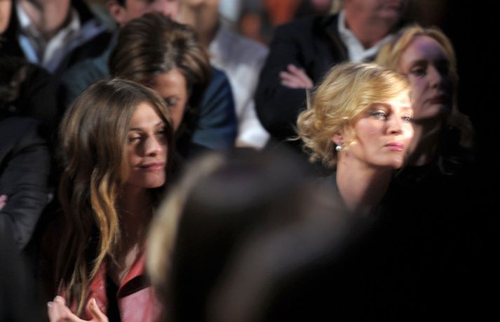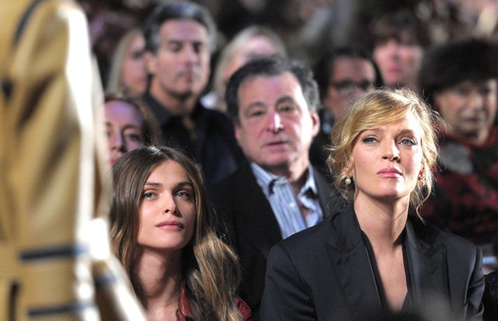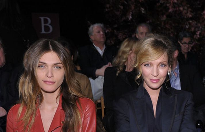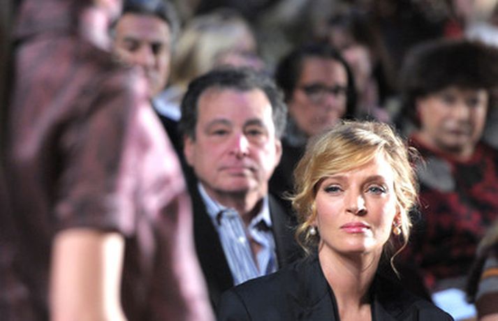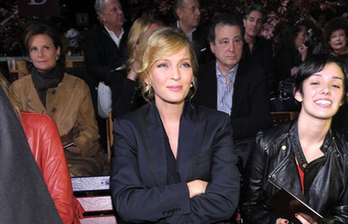Hin stórglæsilega Uma Thurman sem gerði garðinn frægan í myndinni Kill Bill, á von á barni með unnusta sínum til fimm ára, Arpad Busson. Þetta mun vera fyrsta barn þeirra saman en fyrir á leikkonan þrettán ára gamla dóttur og tíu ára gamlan son með fyrrverandi eiginmanni sínum og leikkaranum, Ethan Hawke. Kill Bill stjarnan sem er á fertugasta og öðru ári staðfesti það að hún gengi með barn eftir að sást til hennar á tískuvikunni í New York á dögunum. Á meðfylgjandi myndum má sjá Thurman á fremsta bekk á tískuvikunni í New York.