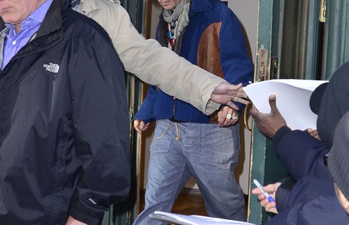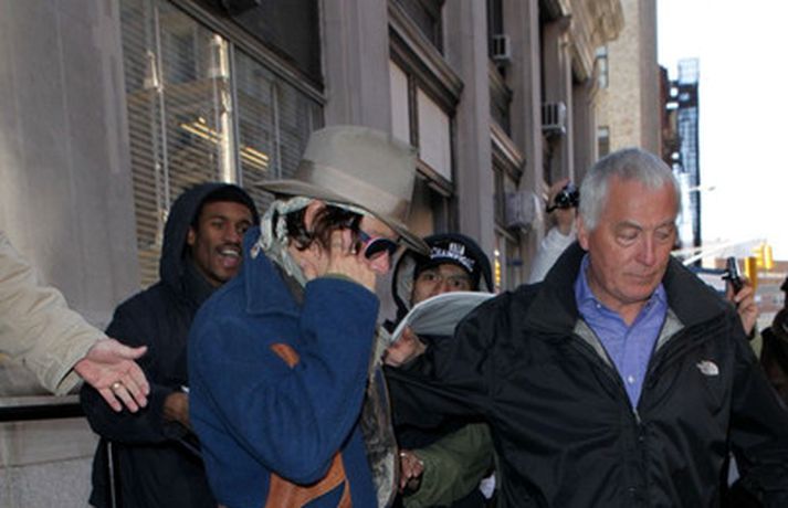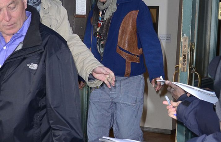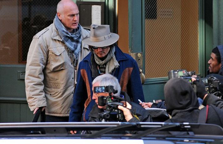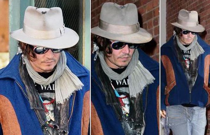 Leikarinn Johnny Depp, 48 ára, yfirgaf íbúð í New York í fylgd lífvarða í gærdag.„Mitt mottó er að njóta ferðarinnar á meðan á henni stendur,“ lét Johnny hafa eftir sér. Eins og sjá má á myndunum var leikarinn niðurlútur með hatt á höfði og sólgleraugu á nefinu.