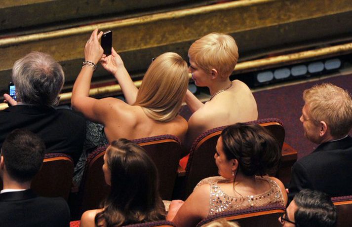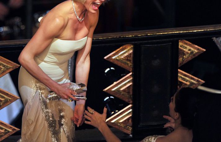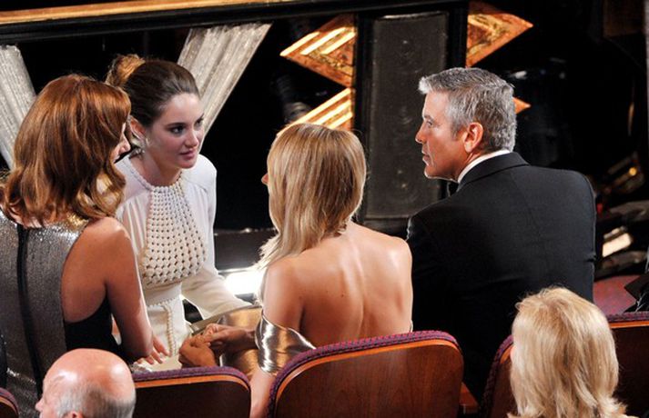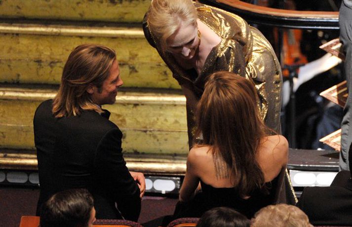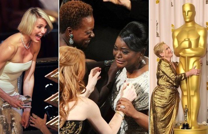 Meðfylgjandi myndir voru teknar í sal og baksviðs á Óskarnum í gærkvöldi. Franska kvikmyndin Listamaðurinn hlaut þrjú af helstu verðlaununum á Óskarsverðlaunahátíðini í Los Angeles í nótt. Leikkonan Meryl Streep fékk loksins aftur Óskarsverðlaun eftir 30 ára bið en hún hefur verið tilnefnd 12 sinnum til þeirra síðan hún vann síðast. Eins og sjá má var stemningin gríðarlega góð og stjörnurnar ýmist grátandi eða hlæjandi.