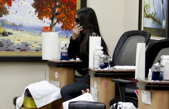Sjónvarpsstjarnan Kim Kardashian hefur nóg að gera ef marka má myndirnar sem teknar vor af henni í vikunni. Eins og sjá má í myndasafni lét hún taka tærnar á sér í gegn og verslaði. Að vanda voru kvikmyndatökumenn á eftir Kim sem mynduðu erilsama dagana hennar fyrir raunveruleikaþátt Kardashian fjölskyldunnar sem sýndur er á sjónvarpsstöðinni E!. Kim nýtti tímann og talaði í símann á meðan tærnar voru snyrtar.