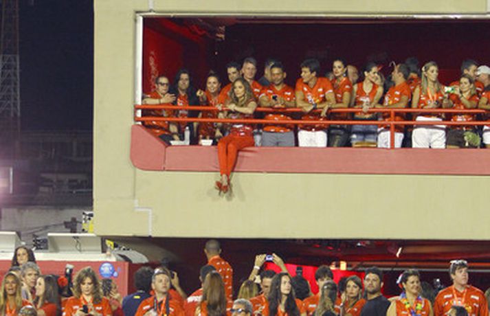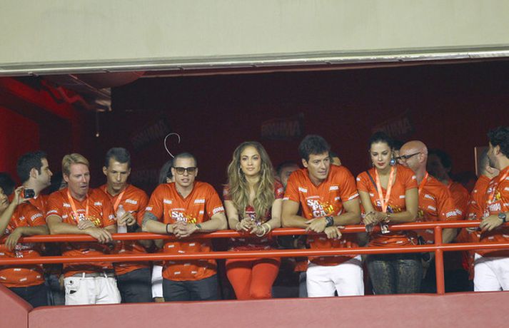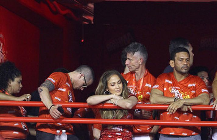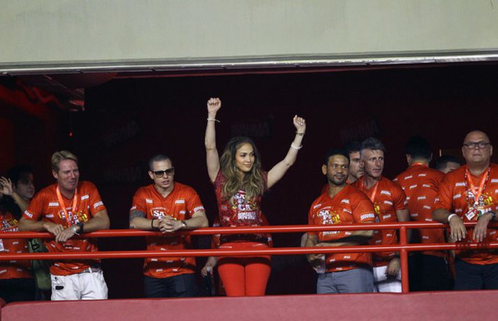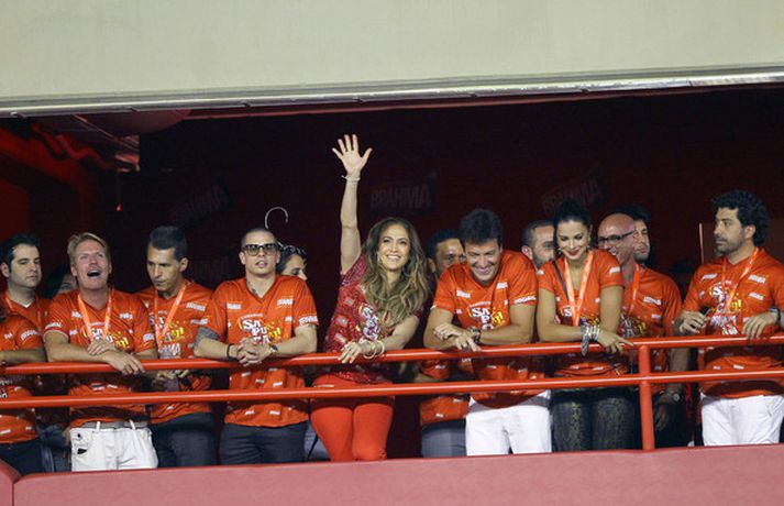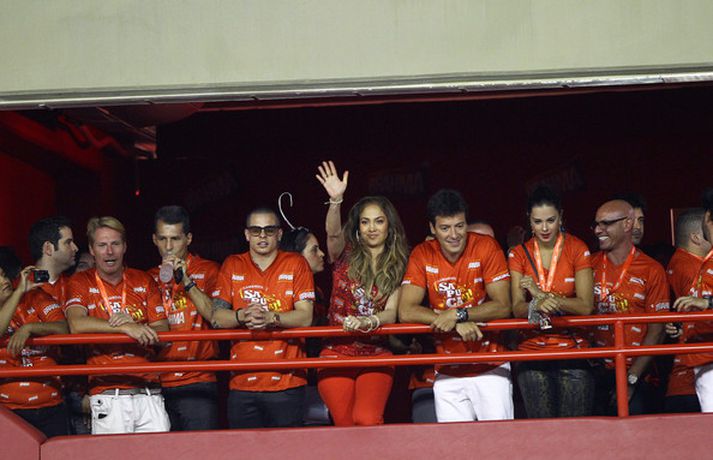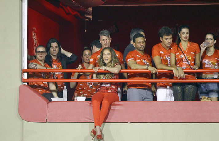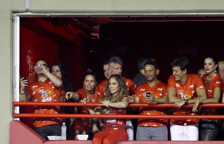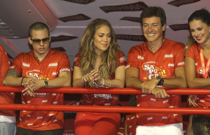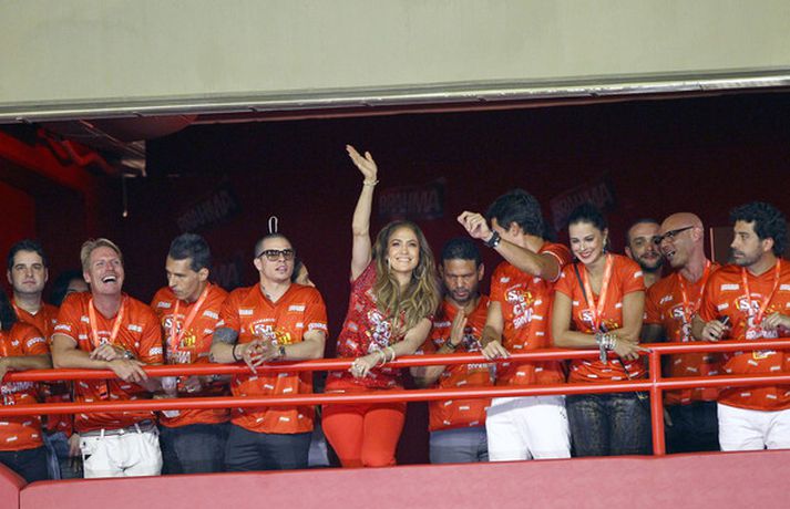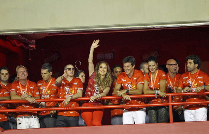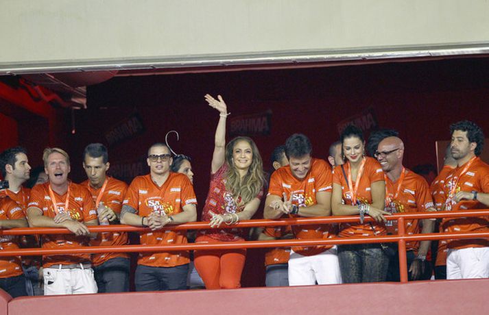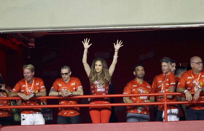 Söngkonunni Jennifer Lopez, 42 ára, leiddist ekki á VIP svæði brasilíska bjórsins Brahma i á karnivalinu í Rio de Janeiro í gær. Hún skemmti sér á milli þess sem hún fylgdist með skrúðgöngunni. Eins og sjá má á myndunum var 24 ára kærastinn hennar, Casper Smart, með í för. Þá var umboðsmaður Jennifer, Benny Medina, einnig með parinu.