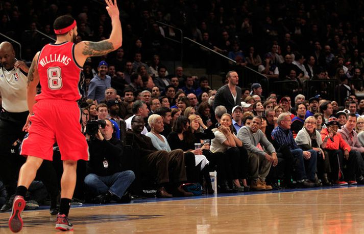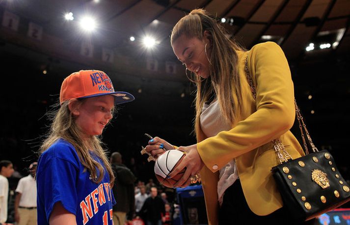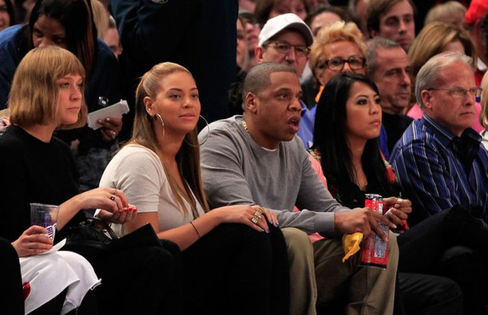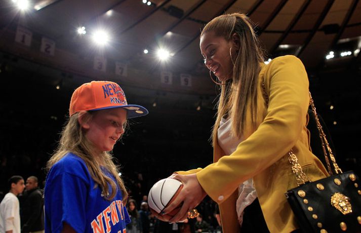Söngkonan Beyonce og eiginmaður hennar Jay-Z létu í fyrsta sinn sjá sig opinberlega síðan Blue fæddist 7. janúar síðastliðinn. Hjónin sátu í gærkvöldi á fremsta bekk á leik New York Knicks og New Jersey Nets í Madison Square Garden í New York eins og sjá má á myndunum. Fjórtán ára íþróttastelpa fékk eiginhandaráritun hjá nýbakaðri mömmunni eins og sjá má í myndasafni.