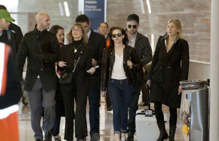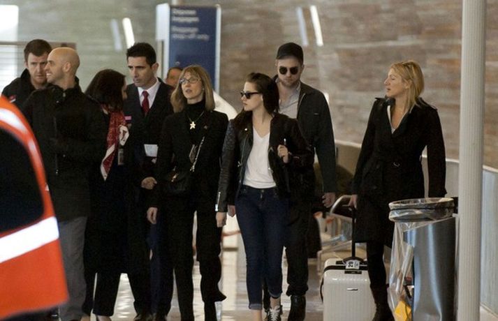 Meðfylgjandi má sjá Twilight-stjörnurnar Robert Pattinson og Kristen Stewart á Charles de Gaulle flugvelli í París í Frakklandi. Eins og heimurinn veit eru Robert og Kristen kærustupar. Þau voru bæði með sólgleraugu á nefinu og reyndu að flýta sér eins og þau gátu á meðan ljósmyndararnir mynduðu þau bak og fyrir eins og sjá má á myndunum. Twilight bækurnar hafa selst í 116 milljónum eintaka og verið þýddar yfir á 38 tungumál, þar á meðal íslensku. Bækurnar fengu snemma jákvæða umsögn frá hinu íhaldssama ameríska foreldrasamfélagi.