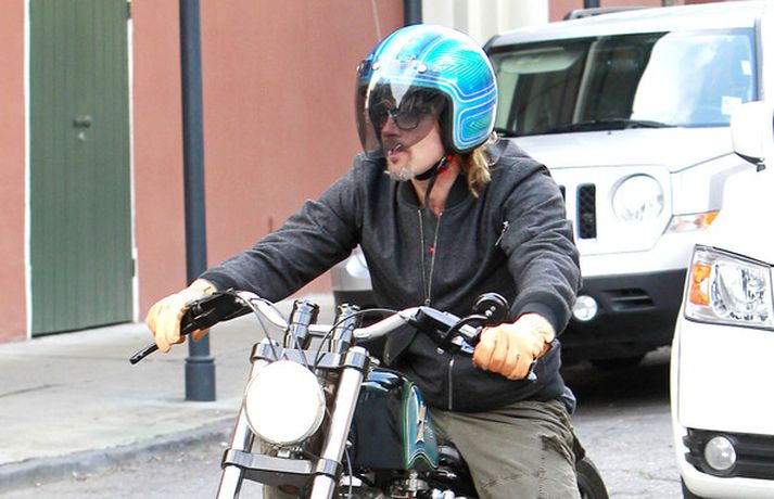 Leikarinn Brad Pitt, 48 ára, og börnin hans Zahara, 7 ára, Shiloh, 5 ára, og Maddox, 10 ára, nutu sín í New Orleans í gær. Eins og sjám á á myndunum hjólaði Brad um hverfið á mótorhjólinu sínu. Þá má einnig sjá myndir af Brad í myndasafni ásamt kollega sínu, leikaranum George Clooney, á góðgerðarsamkomu í Hollywood á dögunum.