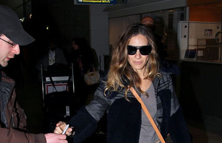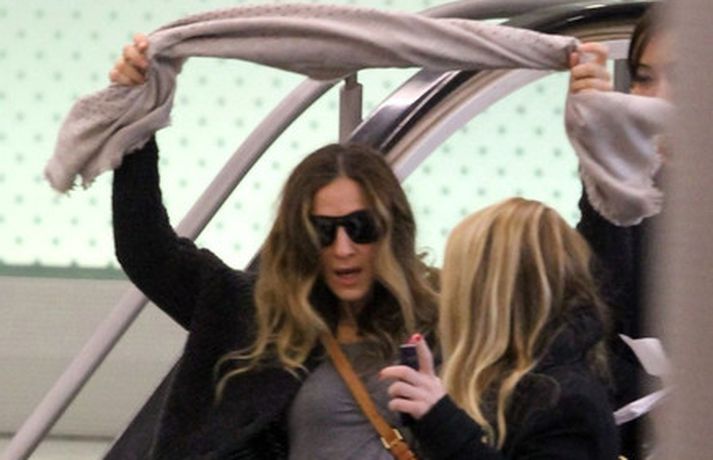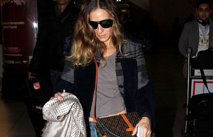 Leikkonan Sarah Jessica Parker, 46 ára, var klædd í tvískiptan blúndukjól þegar hún mætti á Louis Vuitton tískusýninguna á tískuvikunni í París í Frakklandi. Rómantík, blúndur og gamaldags Hollywoodstíll er það sem koma skal fyrir sumarið ef marka má straumana sem einkenna sýningarnar á tískuvikunni. Þá má sjá Söruh á Charles de Gaulle flugvellinum í fyrradag.
