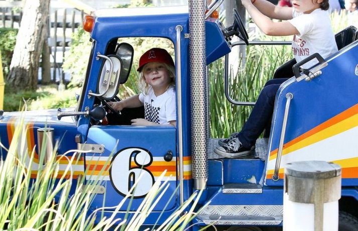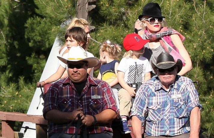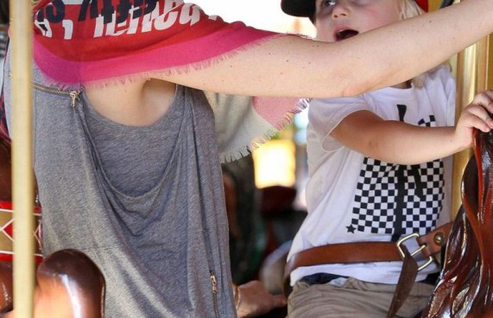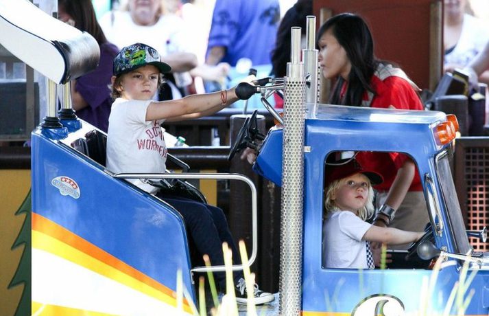 Söngkonan og hönnuðurinn Gwen Stefani, 42 ára, naut samverunnar með drengjunum sínum Kingston og Zuma, í skemmtigarði í Kaliforníu á laugardaginn.Ég vil vera eins og karlmaður en langar á sama tíma að vera með helling af andlitsfarða, lét Gwen hafa eftir sér. Þá má sjá Gwen á rauða dreglinum í veislu á vegum Elton John 26. febrúar síðastliðinn klædd í Zuhair Murad kjól.