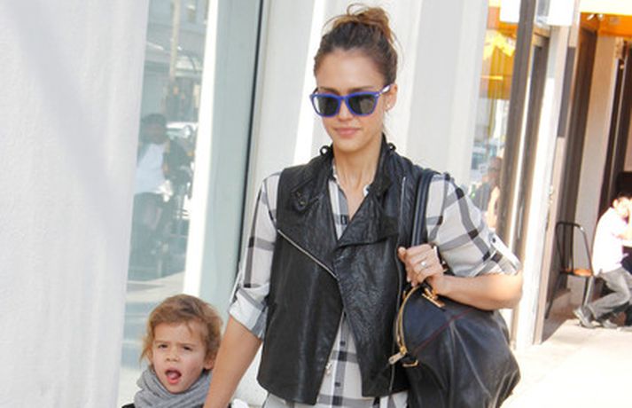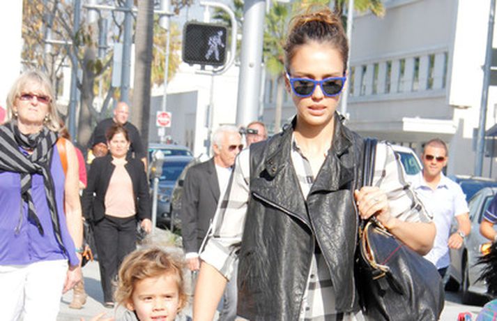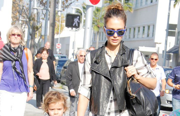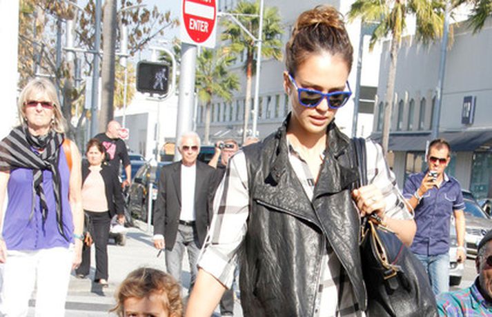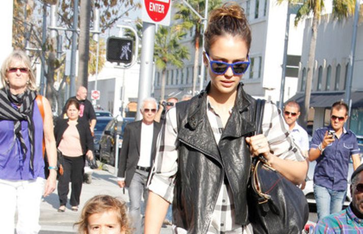 Leikkona Jessica Alba, 30 ára, stillti sér upp á rauða dreglinum klædd í blússu og röndótta peysu. „Þegar þú ert örugg með þig getur þú gert allt - meira að segja þegar þú hefur ekki hugmynd um hvað þú ætlar þér að gera," lét Jessica hafa eftir sér. Þá má einnig sjá leikkonuna ásamt dóttur sinni, Honor, í Beverly Hills í vikunni.