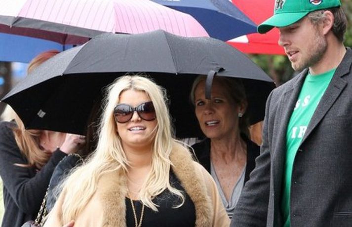Söngkonan Jessica Simpson, 31 árs, og unnusti hennar, Eric Johnson, voru mynduð í Kaliforníu í gær. Eins og sjá má á myndunum er Jessica langt gengin með fyrsta barnið þeirra. Þá má einnig sjá Jessicu með vinkonum í myndasafni.