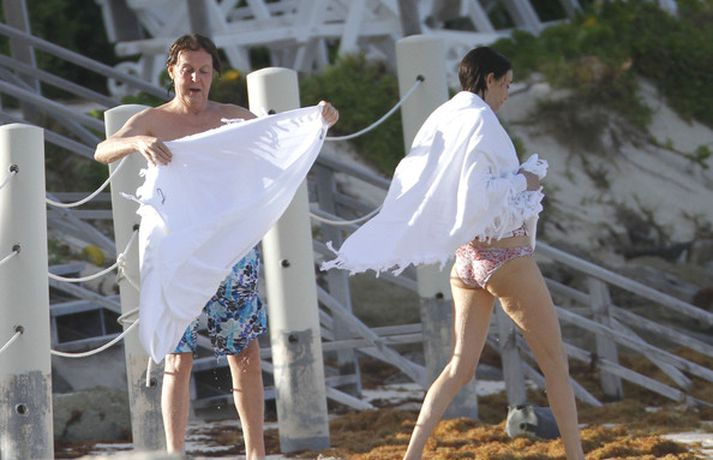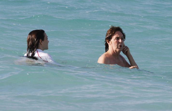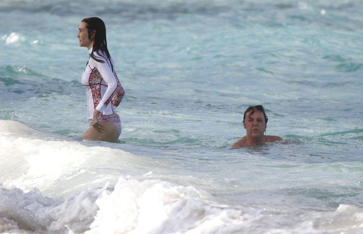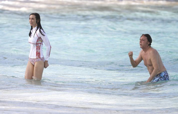 Paul McCartney og eiginkona hans, bandaríska auðkonan Nancy Shevell, áttu ekki í vandræðum með að leika sér í sér á ströndinni í St Barths í Frakklandi í gær. Paul og Nancy hafa verið saman í fimm ár en þau trúlofuðu sig í maí árið 2011 og giftu sig sama ár. Fyrsta eiginkona McCartneys, Linda, lést úr brjóstakrabbameini árið 1998. Það var síðan árið 2002 sem hann kvæntist fyrirsætunni Heather Mills, en þau skildu sex árum síðar.myndir/cover media