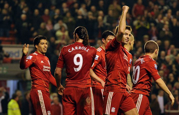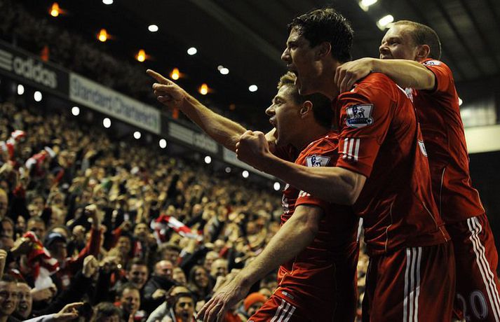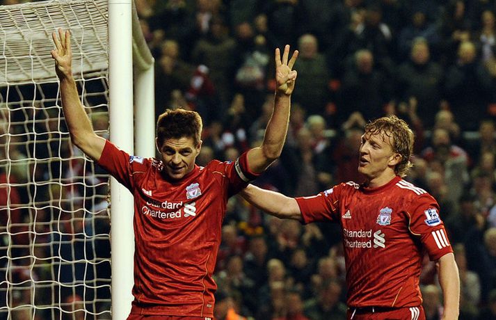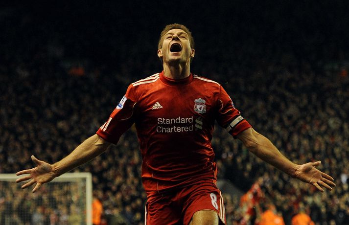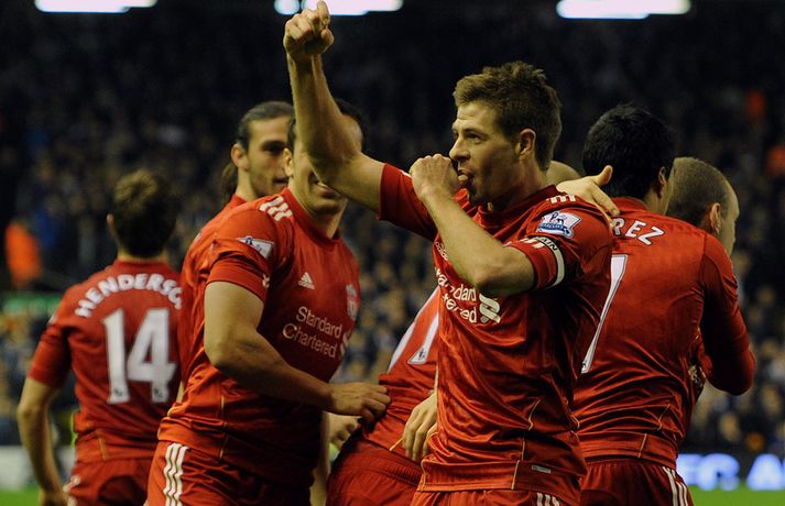 Sam Sheringham blaðamaður á BBC Sport tók sig til og valdi sex bestu leiki Steven Gerrard með Liverpool eftir að fyrirliði Liverpool skoraði þrennu í 3-0 sigri á nágrönnunum í Everton í ensku úrvalsdeildinni í gærkvöldi. „Besti varnarmaðurinn á vellinum var Steven Gerrard, besti miðjumaðurinn var Steven Gerrard, besti sóknarmaðurinn var Steven Gerrard, það hreyfði sig enginn betur án bolta en Steven Gerrard og það var enginn leikmaður með betra hugarfar en Steven Gerrard. Ég sé ekki hvernig þú getur spilað betur en Steven Gerrard gerði í þessum leik," sagði Pat Nevin, sérfræðingur BBC, eftir leikinn. Gerrard bætti met Robbie Fowler í gær en enginn leikmaður hefur nú skoraði fleiri mörk í leikjum Merseyside-liðanna í ensku úrvalsdeildinni. Fowler skoraði sex á sínum tíma en Gerrard er nú kominn með sjö mörk. Gerrard var líka fyrsti Liverpool-maðurinn til að skora þrennu á móti Everton á Anfield síðan að Fred Howe afrekaði það árið 1935. Þetta er ekki í fyrsta sinn sem Steven Gerrard dregur vagninn í flottum sigrum Liverpool-liðsins og Sam Sheringham fann fimm aðra eftirminnilega leiki hjá Gerrard sem lék sinn 400. deildarleik með Liverpool í gær. Eftirminnilegustu leikir Steven Gerrard með LiverpoolMynd/Nordic Photos/Getty 1) Liverpool 3-3 AC Milan, úrslitaleikur Meistaradeildarinnar í maí 2005 Liverpool lenti 3-0 undir í fyrri hálfleik en kom til baka og vann síðan leikinn í vítaspyrnukeppni. Steven Gerrard kveikti í sínum mönnum með því að skora fyrsta markið og fiskaði síðan vítið sem gaf jöfnunarmarkið.2) Liverpool 3-3 West Ham, úrslitaleikur enska bikarsins í maí 2006 Steven Gerrard jafnaði leikinn í 3-3 með frábæru langskoti í uppbótartíma þegar allt stefndi í sigur West Ham. Þetta var annað mark Gerrard í leiknum og hann skoraði einnig úr sinni spyrnu í vítakeppninni sem Liverpool vann 3-1.3) Liverpool 3-1 Olympiakos, Meistaradeildarleikur í desember 2004 Liverpool hefði aldrei komist í úrslitaleikinn 2005 ef liðið hefði ekki unnið tveggja marka sigur á gríska liðinu Olympiakos í riðlakeppninni. Gerrard tryggði 3-1 sigur með frábæru marki á 86. mínútu.4) Liverpool 3-1 Napoli, í Evrópudeildinni í nóvember 2010 Steven Gerrard kom af bekknum og skoraði þrennu á aðeins fjórtán mínútum á móti sterku liði Napoli. Gerrard kom inn á í hálfleik þegar ítalska liðið var 1-0 yfir.5) Liverpool 2-0 Manchester United, í ensku úrvalsdeildinni í mars 2001 Steven Gerrard var aðeins tvítugur á þessum tíma en þegar búinn að vinna sér fast sæti í Liverpool-liðinu. Hann skoraði eftirminnilegt mark af 25 metra færi í þessum leik og var allt í öllu á miðju liðsins. Liverpool náði því að vinna báða deildarleikina á móti United í fyrsta sinn í 22 ár.6) Liverpool 3-0 Everton, í ensku úrvalsdeildinni í mars 2012 Steven Gerrard skoraði öll mörkin þegar Liverpool endaði þriggja leikja taphrinu með 3-0 sigri á nágrönnunum í Everton.