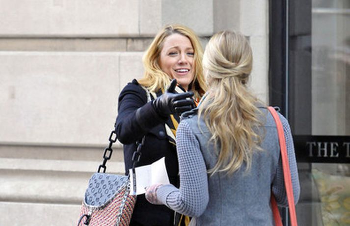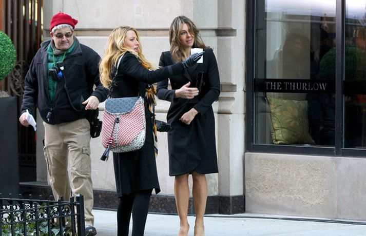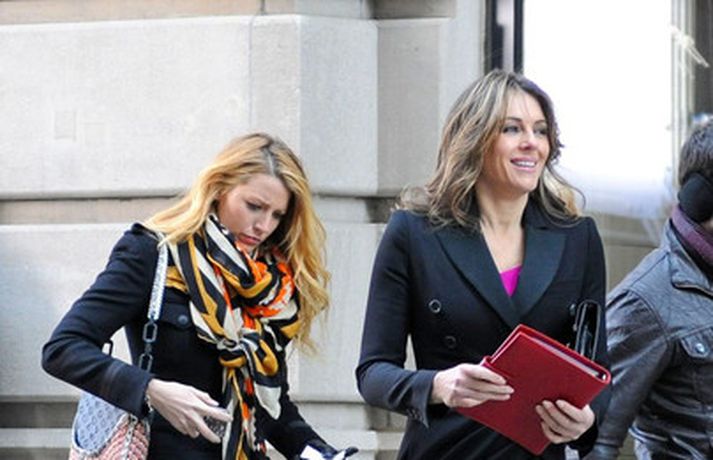 Leikaraparið Blake Lively og Ryan Reynolds leiddist á leið í lautarferð á sunnudaginn í Los Angeles. Parið kom við í ísbúð áður en það fór í rómantíska leiðangurinn. Þá má einnig sjá Blake ásamt bresku leikkonunni Elizabeth Hurley við tökur á sjónvarpsþáttunum vinsælu „Gossip Girl“ í New York.