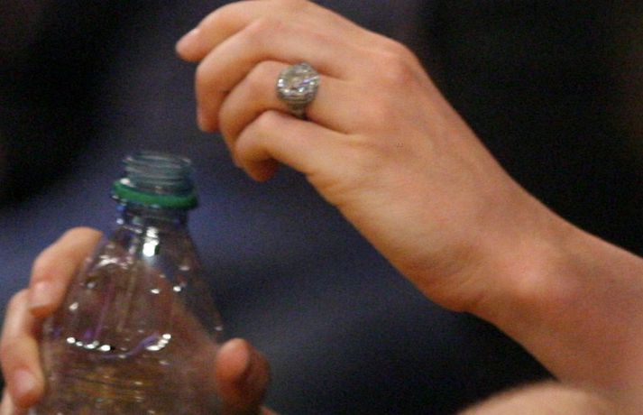 Leikkonan Jessica Biel, 30 ára, bar trúlofunarhringinn sem Justin Timberlake gaf henni þegar hann fór á skeljarnar yfir jólin. Hringurinn, sem var á baugfingri vinstri handar Jessicu, fór ekki fram hjá nokkrum einasta manni sökum stærðar eins og sjá má á myndunum sem teknar voru á körfuboltaleik þar sem Lakers sigruðu Boston Celtics 97-94 í Staples Center í Los Angeles.