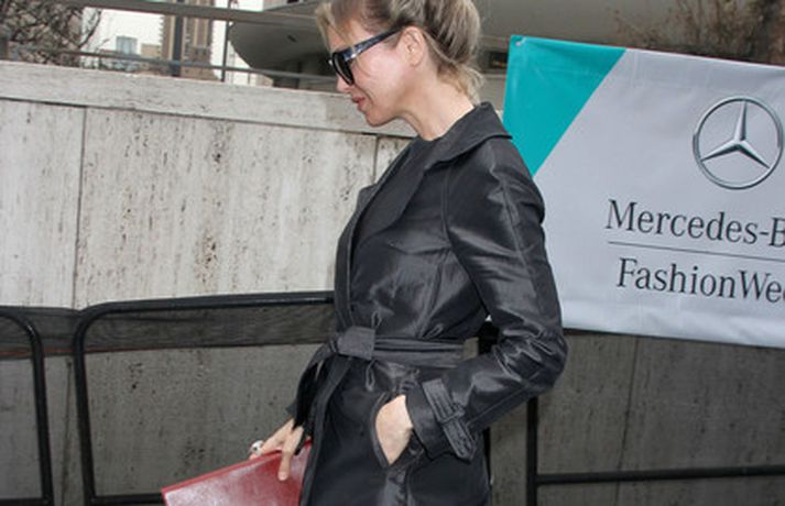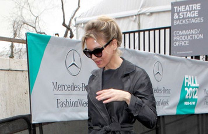 Leikkonan Renee Zellweger, 42 ára, mætti á tískuvikuna í París með uppsett hárið og sólgleraugu á nefinu. Eins og sjá má á myndunum læddist hún bakdyramegin til að komast hjá ljósmyndurum sem biðu hennar. Leikkonan hefur samþykkt að leika Bridget Jones í þriðju myndinni ásamt leikurunum Colin Firht og Hugh Grant sem fara með hlutverk Mark Darcy og Daniel Cleaver.