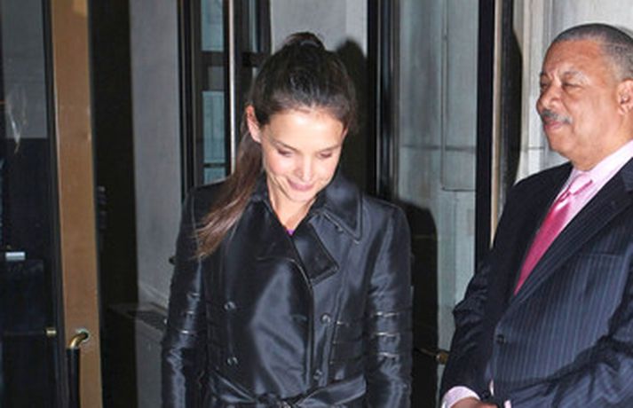 Leikkonan Katie Holmes, 33 ára, var mynduð yfirgefa heimili sitt í New York ásamt móður sinni í gær. Eins og sjá má fær leikkonan ekki frið frá ljósmyndurum, eða paparössum eins og þeir eru kallaðir, sem sitja um heimili hennar og eiginmannsins Tom Cruise. Hún tekur áreitinu hinsvegar með einstakri ró eins og sjá má ef myndirnar eru skoðaðar.