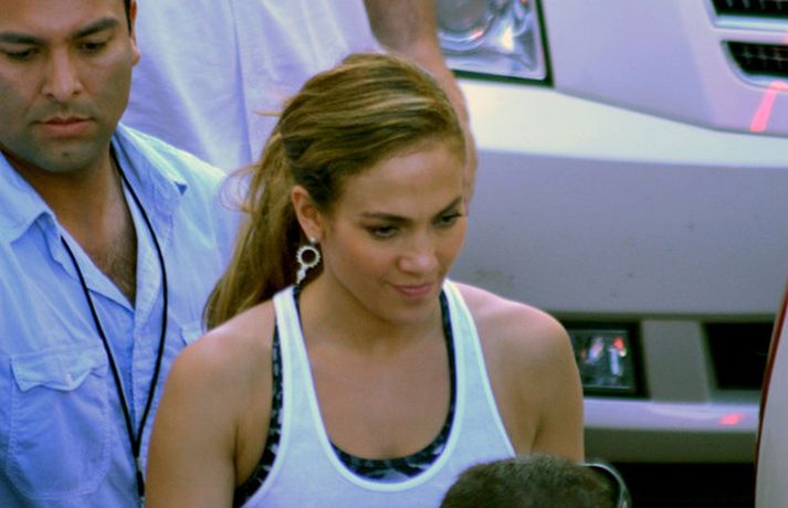 Jennifer Lopez gerir allt brjálað hvar sem hún stígur niður fæti enda eru vinsældir hennar í hámarki um þessar mundir. Lopez skellti sér út að borða með kærastanum unga Casper Smart að vinnudegi loknum í vikunni og var glæsileg í glitrandi stjörnukjól. Í meðfylgjandi myndasafni má sjá Lopes á setti fyrr um daginn þegar hún fékk son sinn í heimsókn en hún hefur unnið að nýju tónlistarmyndbandi undanfarna daga.
