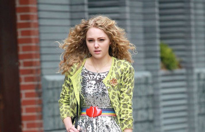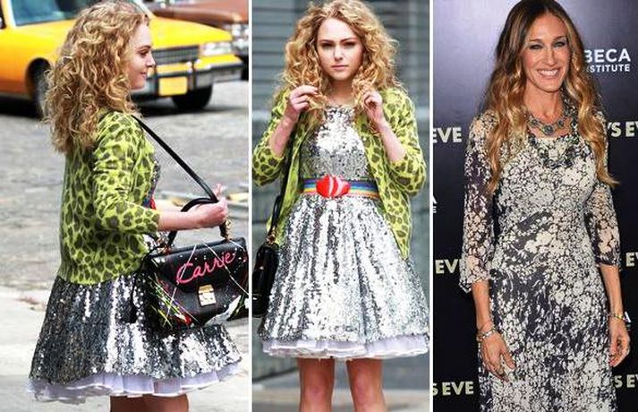Átján ára leikkonan AnnaSophia Robb var mynduð í New York við tökur á nýrri sjónvarpsþáttaröð „The Carrie Diaries“ eða Dagbók Carrie Bradshaw sem leikkonan Sarah Jessica Parker lék eftirminnilega í Sex and the City kvikmyndunum og sjónvarpsþáttarö Eins og sjá má á myndunum er AnnaSophia ekkert svo ólík Söruh Jessicu.