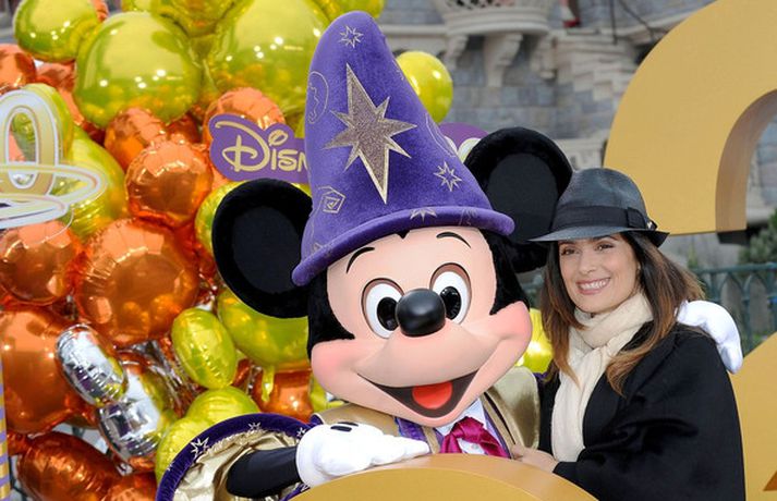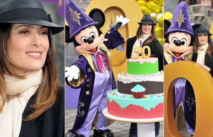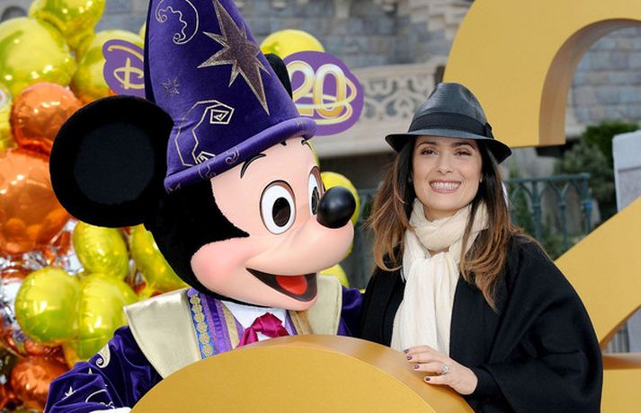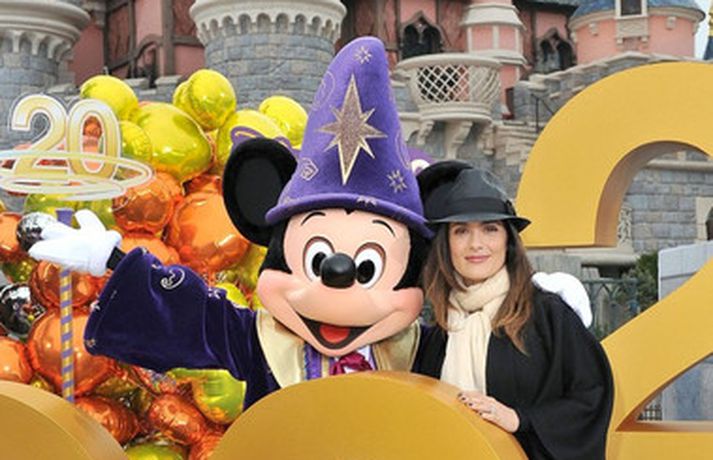 Leikkonunni Sölmu Hayek leiddist ekki með Mikka Mús í Disneylandi í gær. Um var að ræða 20 ára afmælishátíð í skemmtigarðinum í París í Frakklandi. Þá má sjá myndir af henni ásamt eiginmanni sínum, athafnamanninum Francois-Henri Pinault. „Ef þú ert ástfangin af einhverjum þá viltu líta vel út fyrir viðkomandi. Meira að segja þó við förum ekki út á lífið þá reyni ég að hafa mig til fyrir hann,“ sagði Salma.