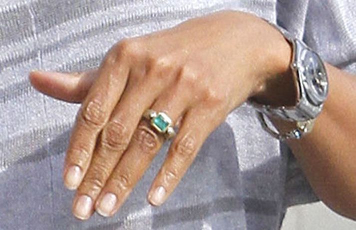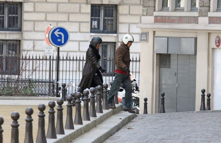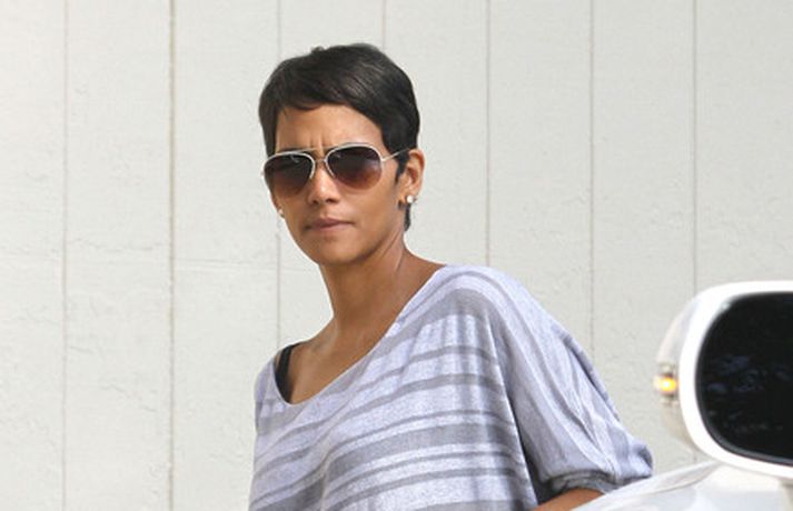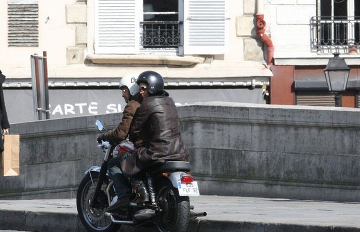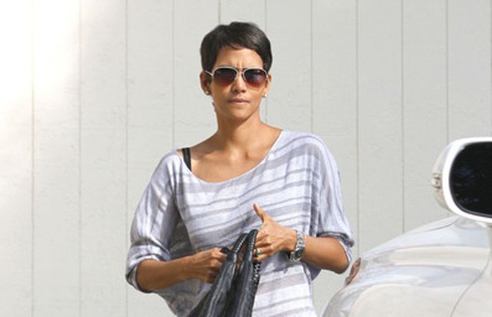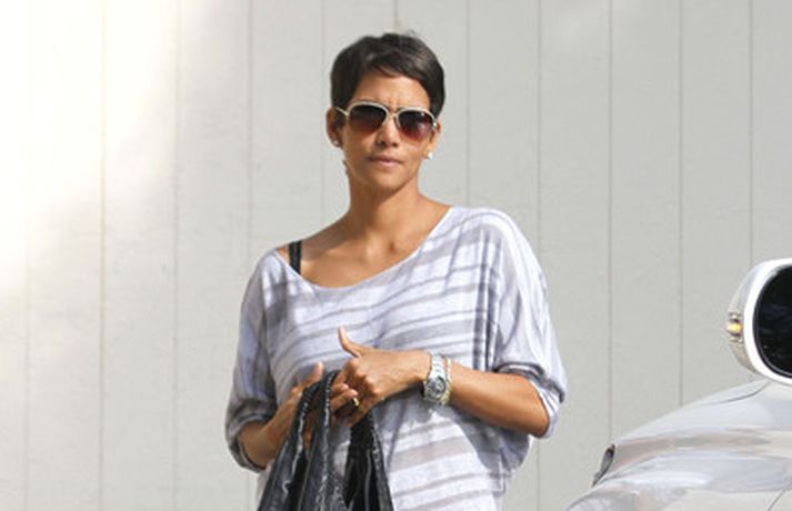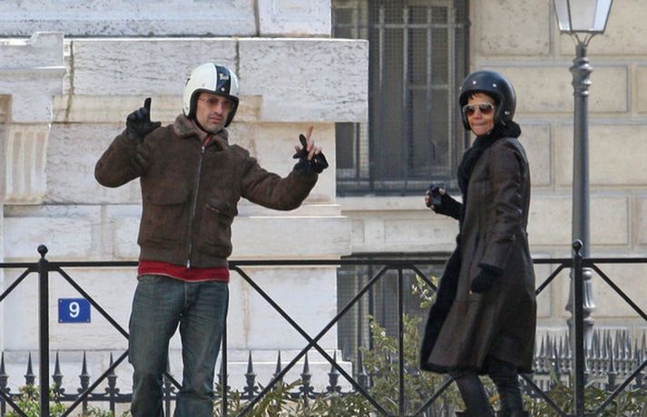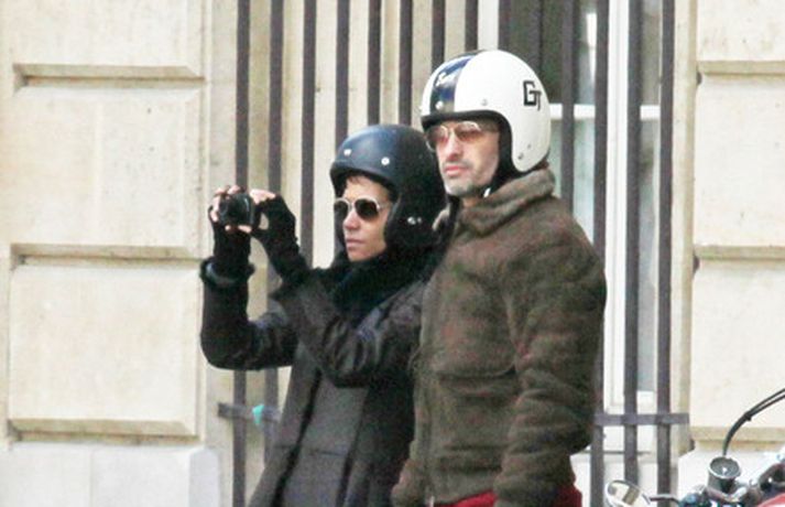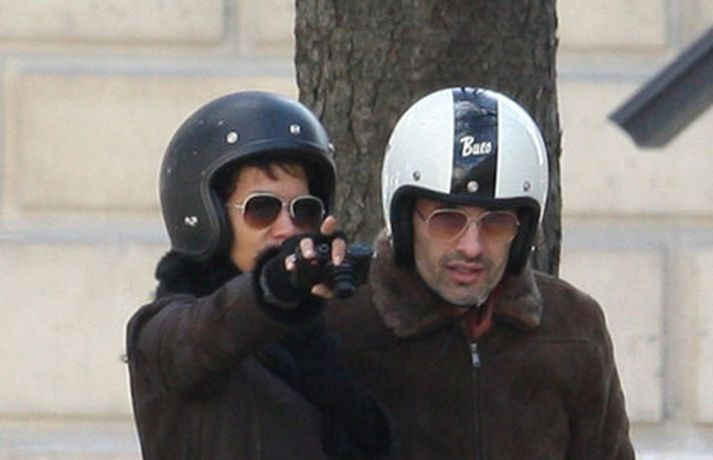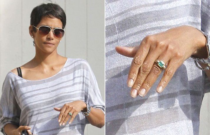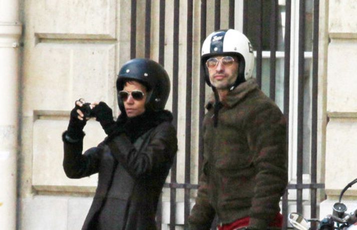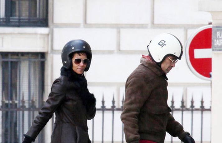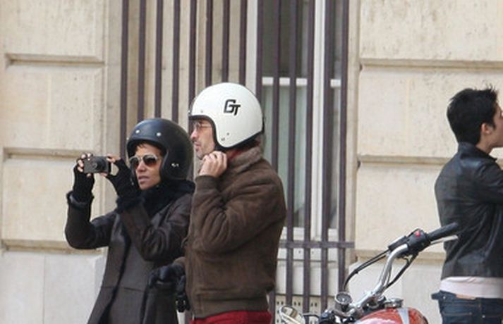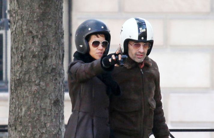 Bandaríska leikkonan Halle Berry sem trúlofaðist franska leikaranum Oliver Martinez í janúar á þessu ári sýndi ágengum ljósmyndurum trúlofunarhringinn sinn eins og sjá má í myndasafni. Þá má sjá parið á ferðinni á mótorhjóli um Parísarborg í síðustu viku.