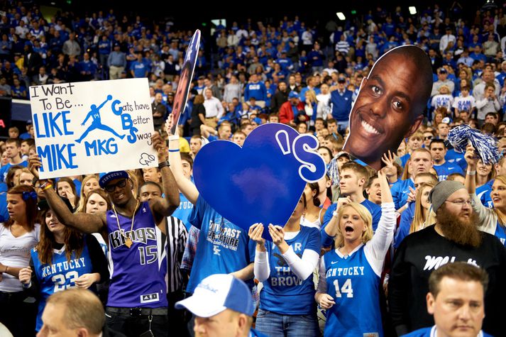 Stuðningsmenn Kentucky-háskólans gengu af göflunum síðustu nótt þegar körfuboltalið skólans hafði tryggt sér sæti í úrslitaleik háskólaboltans. Þúsundir flykktust út á göturnar við skólann þar sem sigrinum var fagnað með því að velta við bílum og kveikja í sófum. Allt þekktar leiðir til þess að fagna sigrum í íþróttakappleikjum. Það þurfti að kalla út óeirðalögregluna til þess að hafa hemil á fjöldanum en það skilaði takmörkuðum árangri. Siguróðir stuðningsmenn Kentucky köstuðu tómum bjórflöskum í lögregluna og einhverjir brutust inn í verslanir. Nokkrir slösuðust í látunum og um 20 manns voru handteknir. Lögreglan bíður nú milli vonar og ótta eftir úrslitaleiknum sem fram fer annað kvöld.