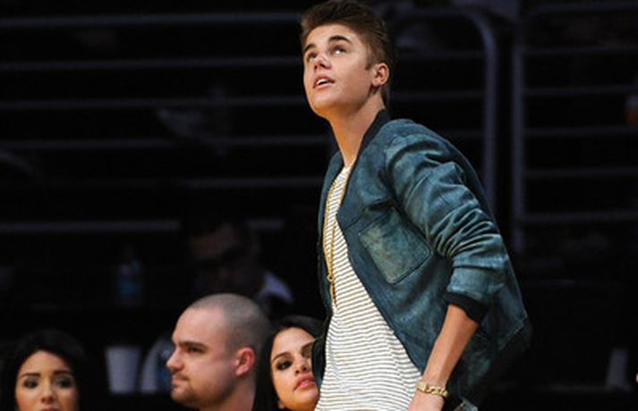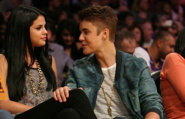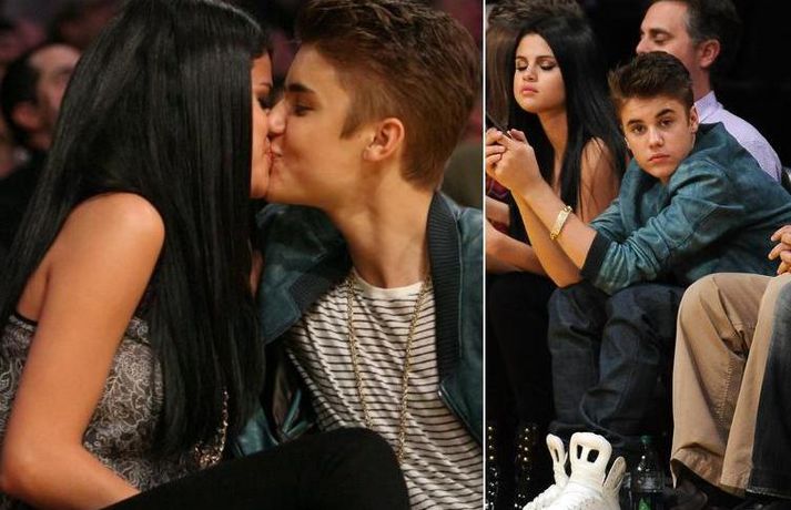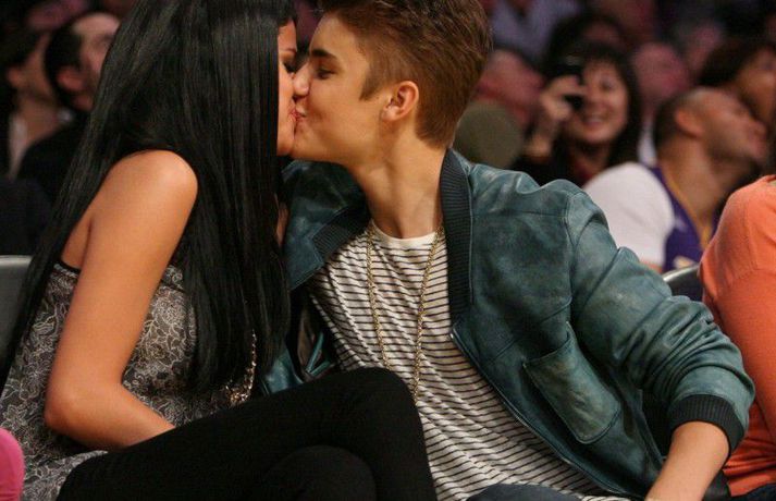 Selena Gomez kyssti unnusta sinn, Justin Bieber, rembingskossi á körfuboltaleik San Antonio Spurs og Lakers í gær sem fór 112-91. Eins og sjá má á myndunum fór vel á með parinu sem er greinilega ástfangið upp fyrir haus.