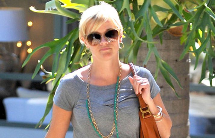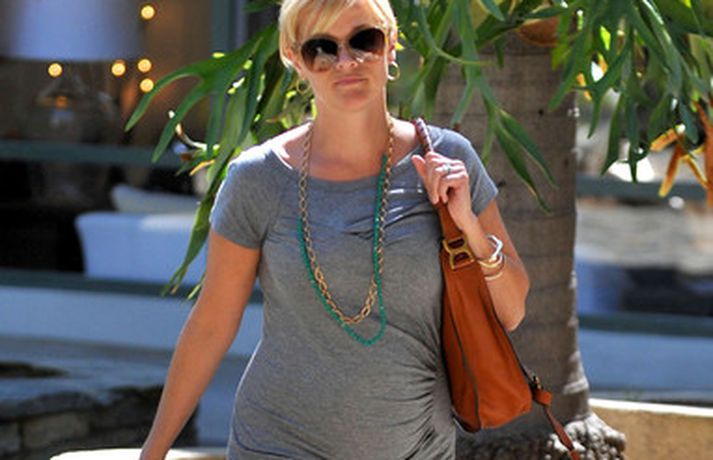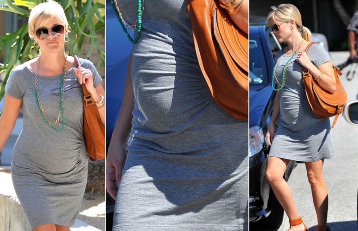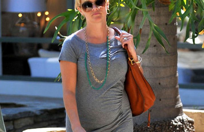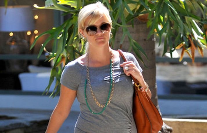 Eins og sjá má á myndunum er farið að sjást á leikkonunni Reese Witherspoon, 36 ára. Leikkonan á tvö börn af fyrra hjónabandi sínu með leikaranum Ryan Phillippe. Dóttirin Ava er þrettán ára og sonurinn Deacon er orðinn níu ára. „Börnin eru það besta í lífi mínu. Ég vakna ekki til að búa til kvikmyndir, ég vakna til að vera með fjölskyldunni minni," sagði hún.