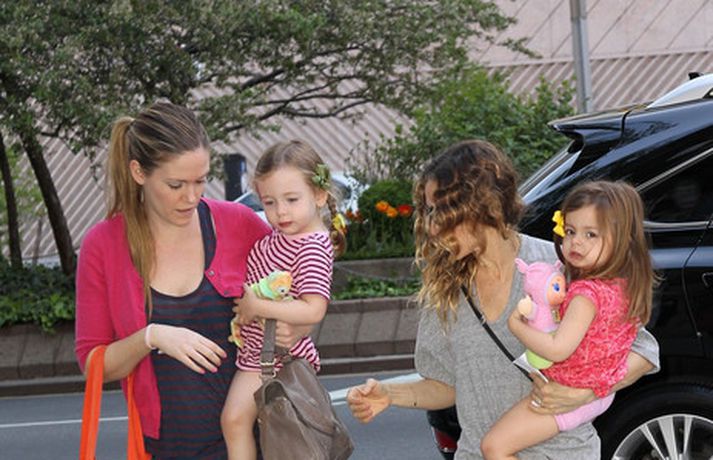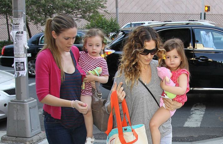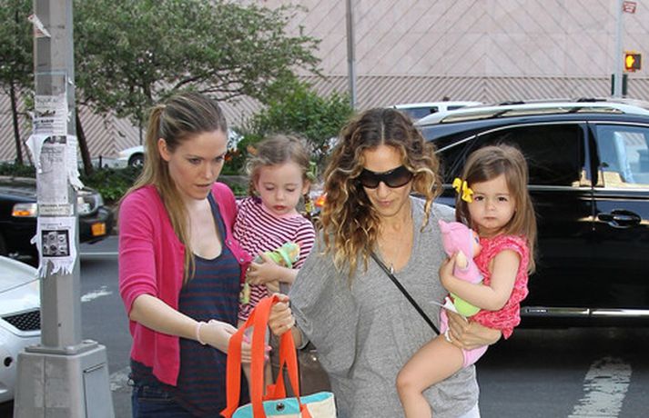 Leikkonan Sarah Jessica Parker, 49 ára, var mynduð í New York með dætrum sínum, Marion og Tabithu á leiðinn í leikskólann í gærdag. Þá má einnig sjá hana með syni sínum, James. Eins og sjá má var Sarah klædd í gallabuxur og rauða sandala með veski um sig miðja. Myndir má skoða í meðfylgjandi myndasafni.