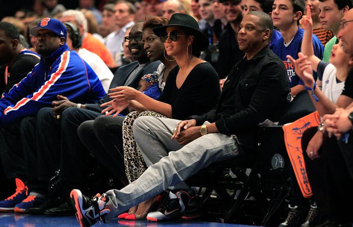 Söngkonan Beyonce Knowles, 30 ára, mætti í bleikum skóm og munstruðum buxum, með hatt á höfði og sólgleraugu á nefinu, á leik Miami Heat og New York Knicks sem fór 93-85 í gær. Með söngkonunni var eiginmaður hennar, Jay-Z. Dóttir þeirra var hinsvegar fjarri góðu gamni. Bleiku skóna má skoða betur í myndasafni.