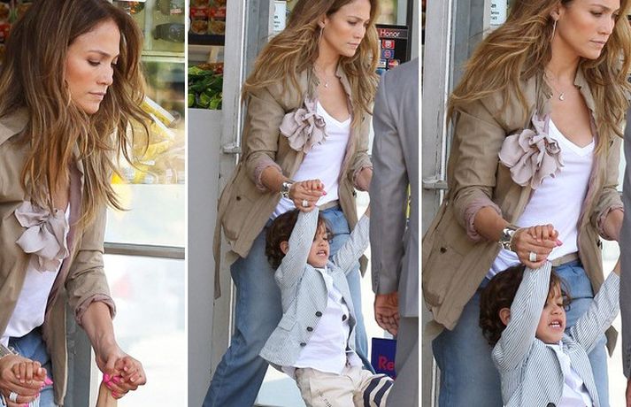 Jennifer Lopez, 42 ára, og sonur hennar, Max, komu við á bensínstöð í gær í Sherman Oaks í Kaliforníu. Eins og sjá má vidi American Idol dómarinn drífa sig í bílinn sem beið þeirra á meðan drengurinn vildi leika. Skoða má myndir af mæðginunum í myndasafni.